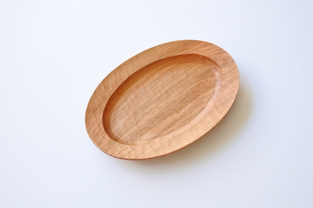 山口和宏 オーバル皿 L 福岡県うきは市に工房を構え、温かみのある木工の道具を製作している山口和宏さんのオーバル皿です。 おやつ、パン、ピザ、果物はもちろんのこと、おにぎりや唐揚げなど水気の少ないお料理ならどんなものでもお使いいただけます。 我が家では色の染みる心配のないペペロンチーノやアンチョビオイルのパスタなどにも使っています。 材料には丸太から仕入れた山桜を工房で十分に乾燥させてから加工しています。 仕上げには木の素材感を感じられるよう、手づくりのミツロウワックスを使用しています。 木目はランダムでお送りしますが、お選びいただきたい方はお問い合わせください。 size H 約3.2cm × W 約28.5cm × D 約20cm 素材 山桜 日本製 〈お手入れについて〉 使用後はすぐに、ぬるま湯や中性洗剤などで洗い、水気をふきとり、風通しのよいところに保管してください。木のものは、 しっかり乾燥させることが長くお使いいただけるコツです。 使っているうちに、表面のツヤがなくなったらミツロウワックスやオリーブオイルなどをいらなくなった布につけて、薄く表面に塗って1曰乾かしてからご使用ください。 食洗機や乾燥機、電子レンジなどは、折れたり変形することがありますのでご使用をお控えください。 また、変色の原因となりますので長い間直射日光をあてることも、お控えください。