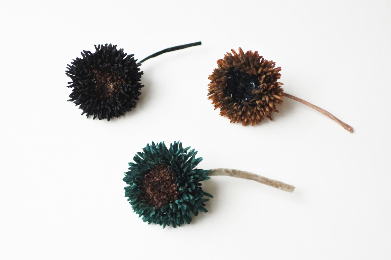 丸く小さなお花は普段使いのブローチのように使うことが出来ます。