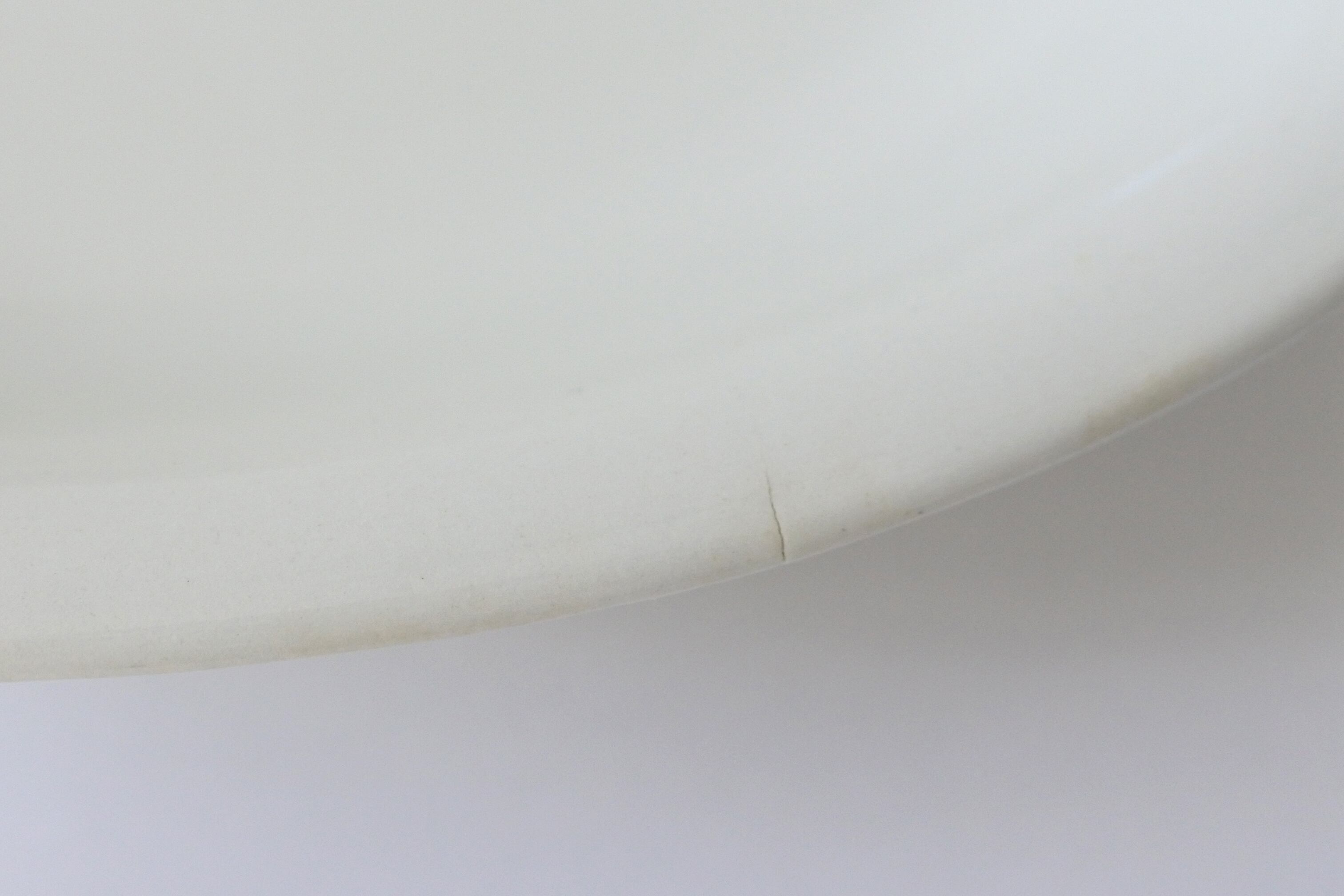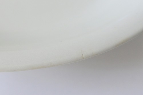 縁に製造時からのヒビがありますが、釉薬で保護されており使用に問題はありません。