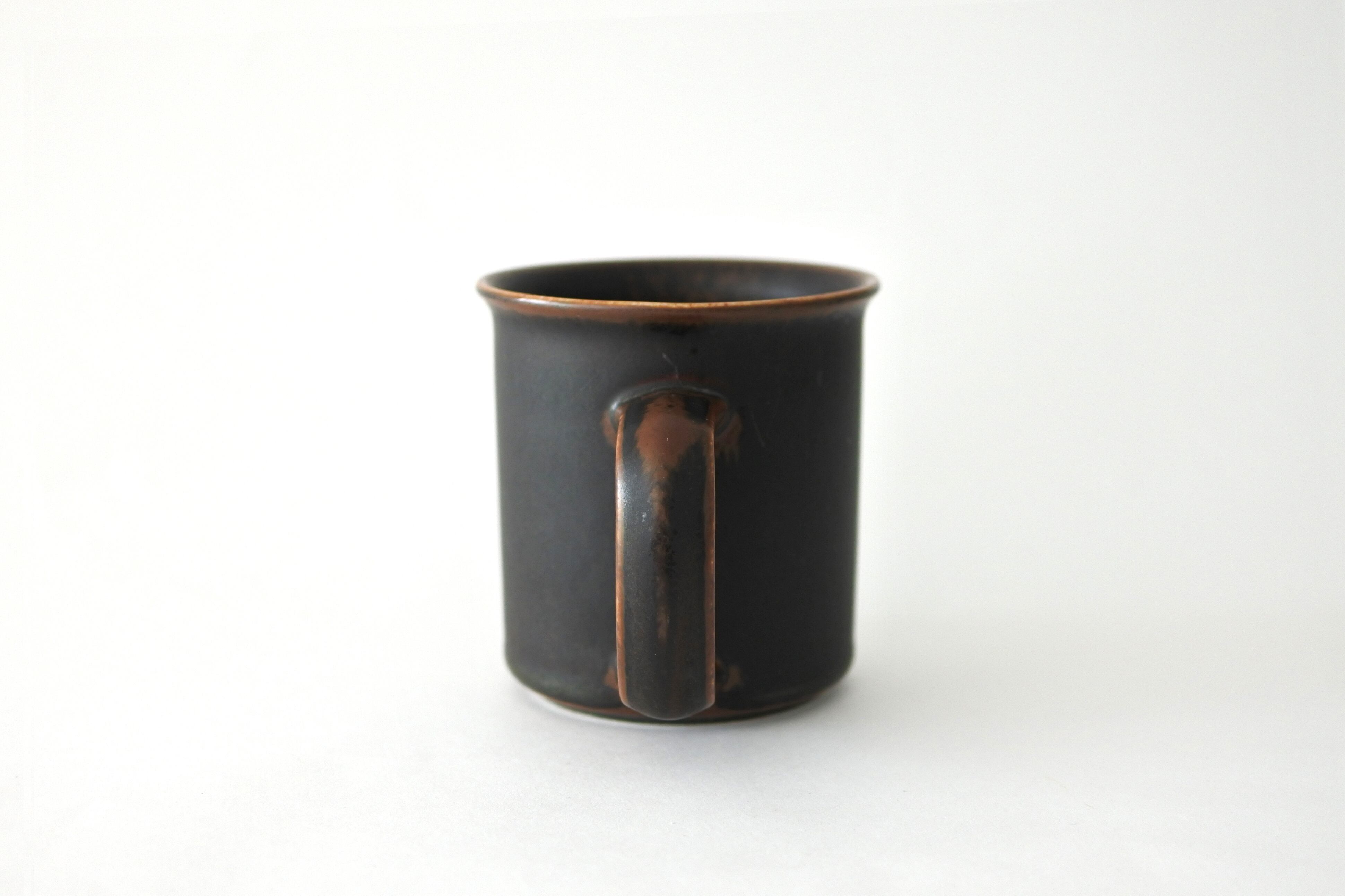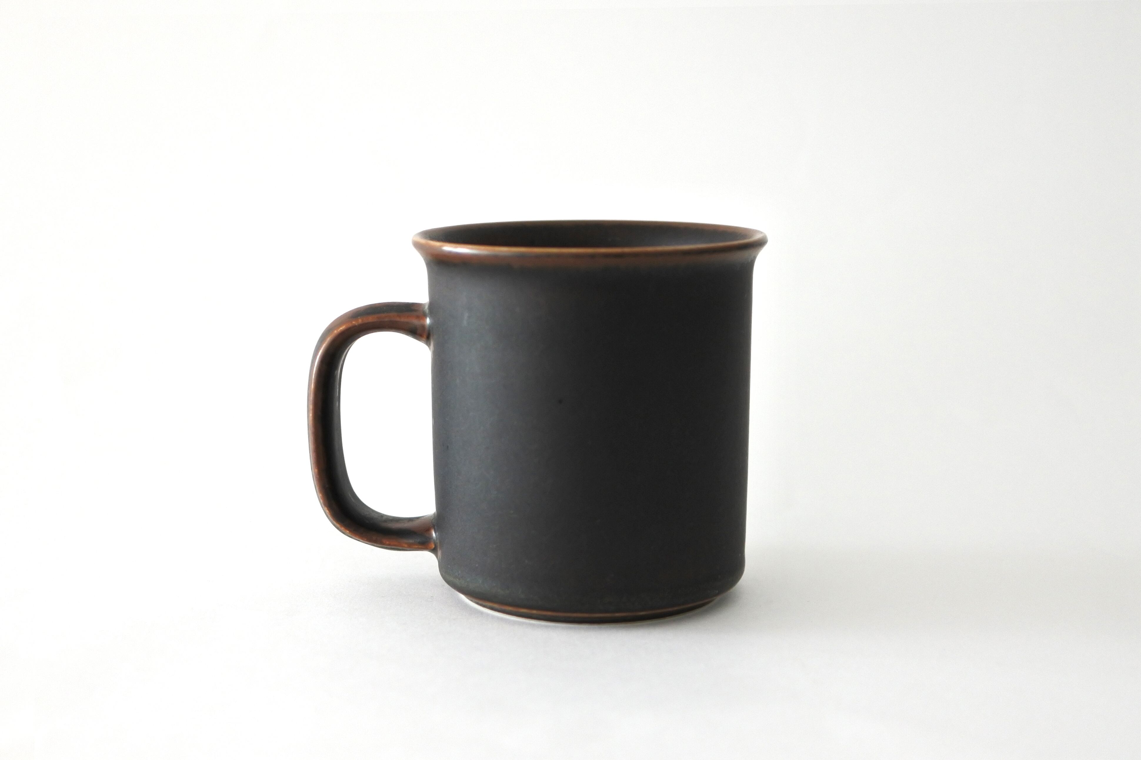 深みのあるマットな色合いはひとつひとつ表情が異なりますが、その中でも縁とハンドルの背を除いてほぼ深いブラックで覆われた男前な一品です。