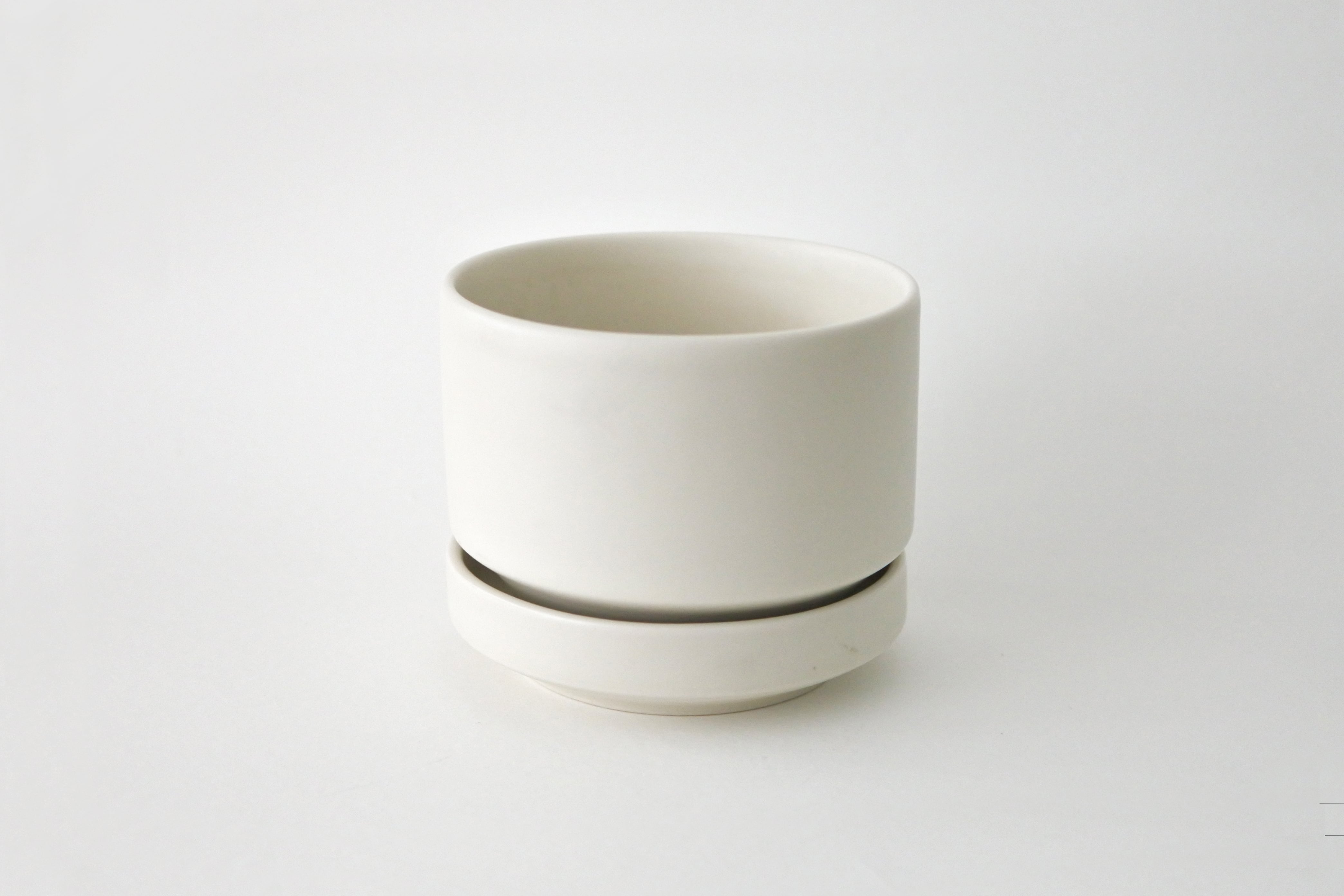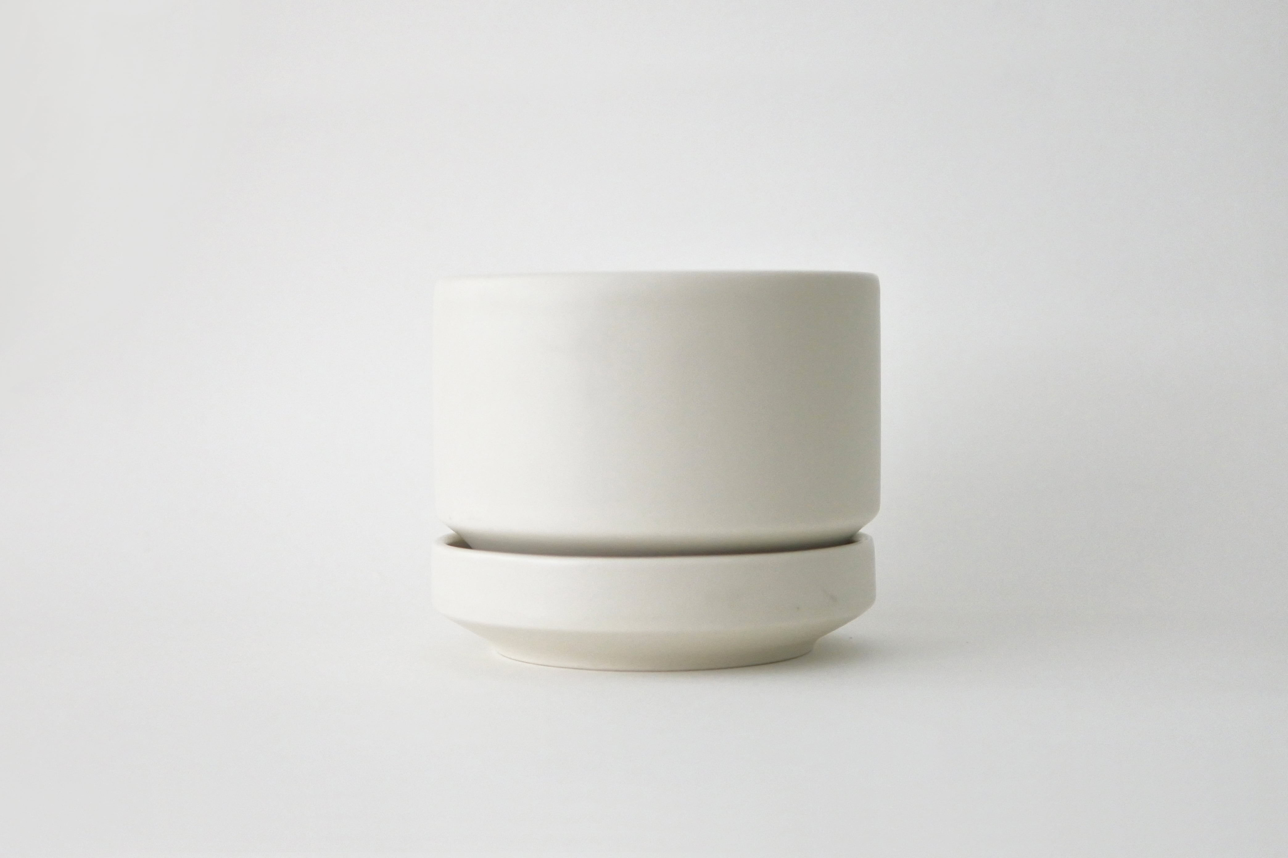 マットな質感の植木鉢本体と受け皿が一体となったシンプルな機能美。