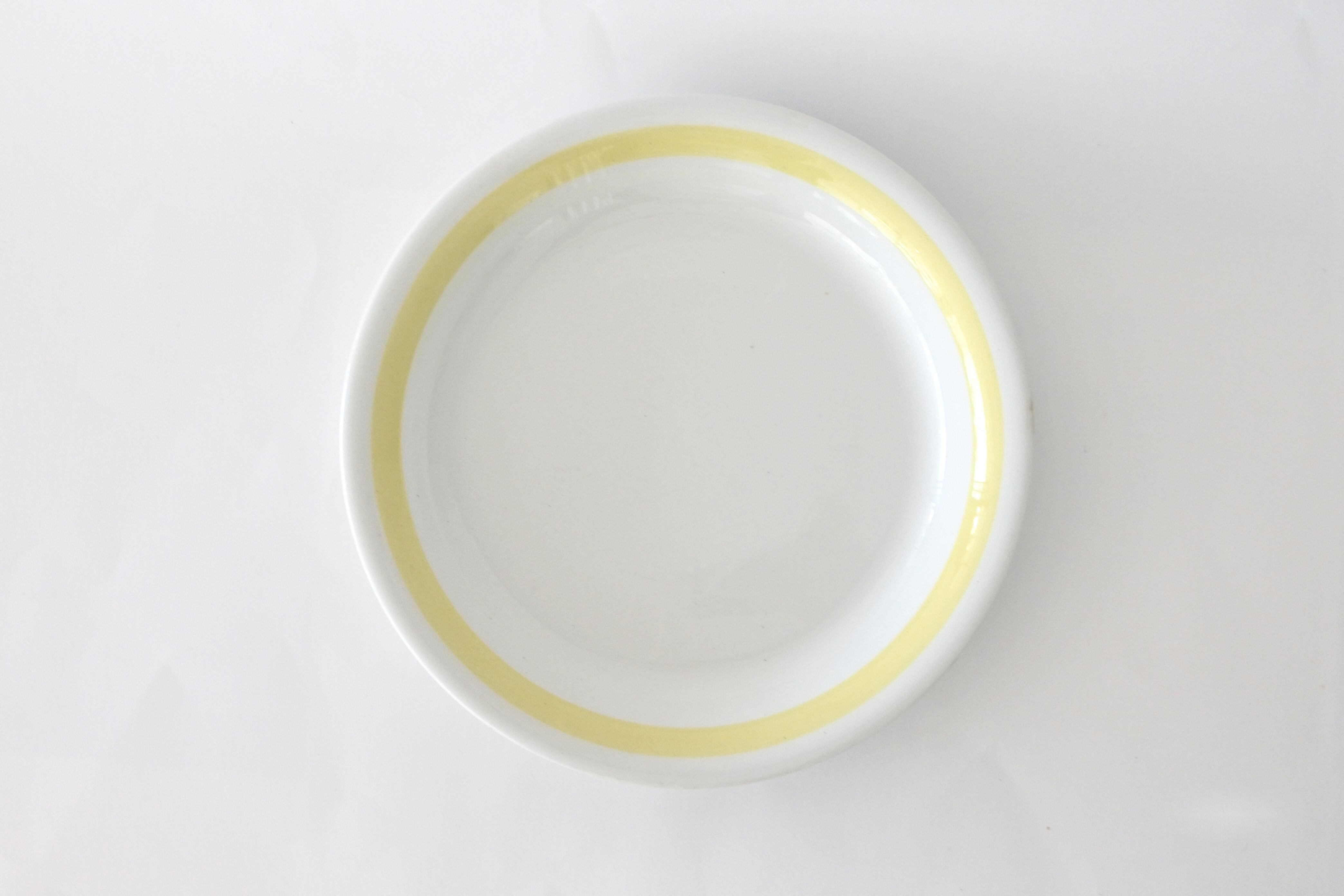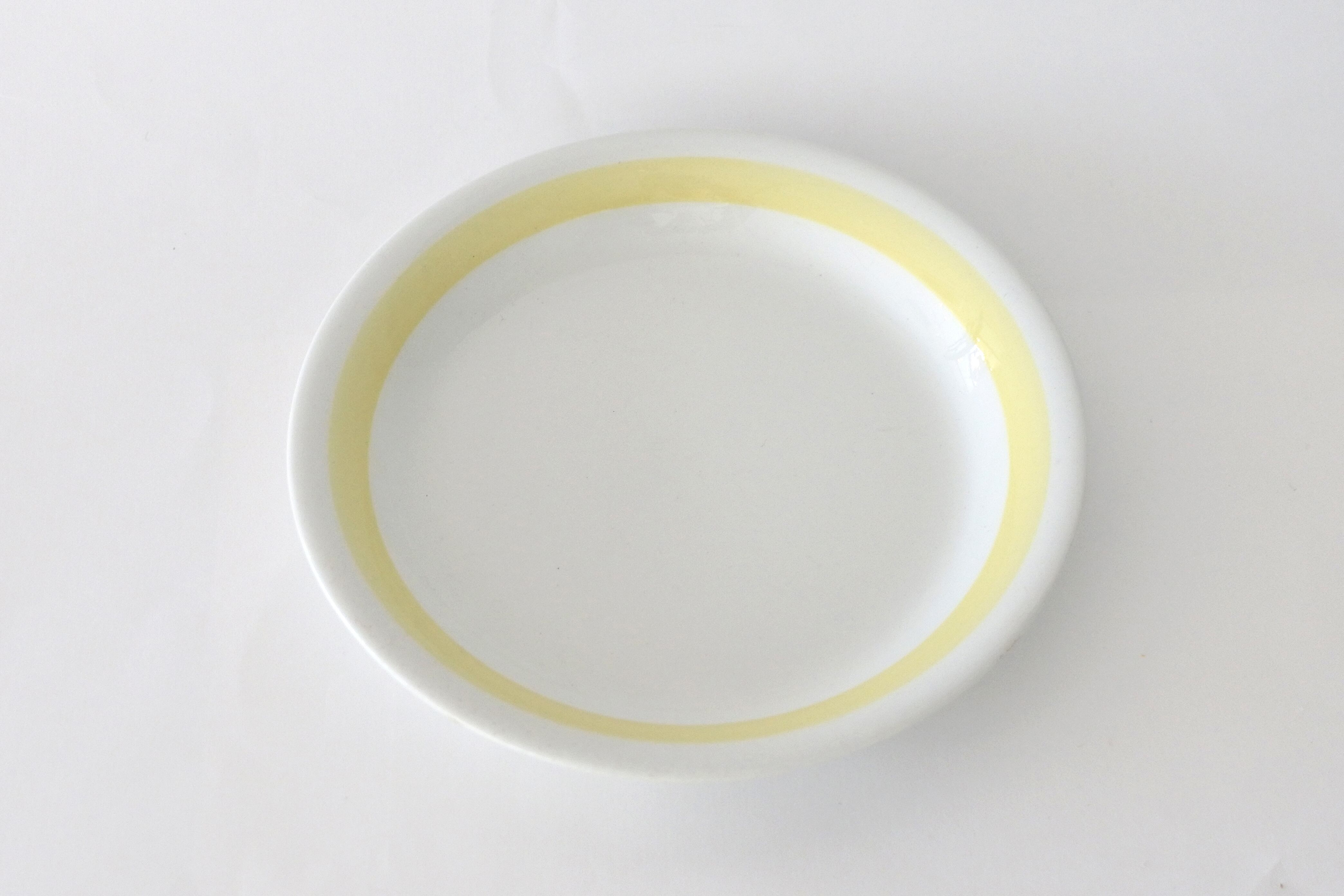 リムに余白を残したリボンのような色付けは、他にブルー、レッド(ピンク)、グリーンなどがありますが、今回はふわりとした卵色のようなイエローの縁取りのものが見つかりました。