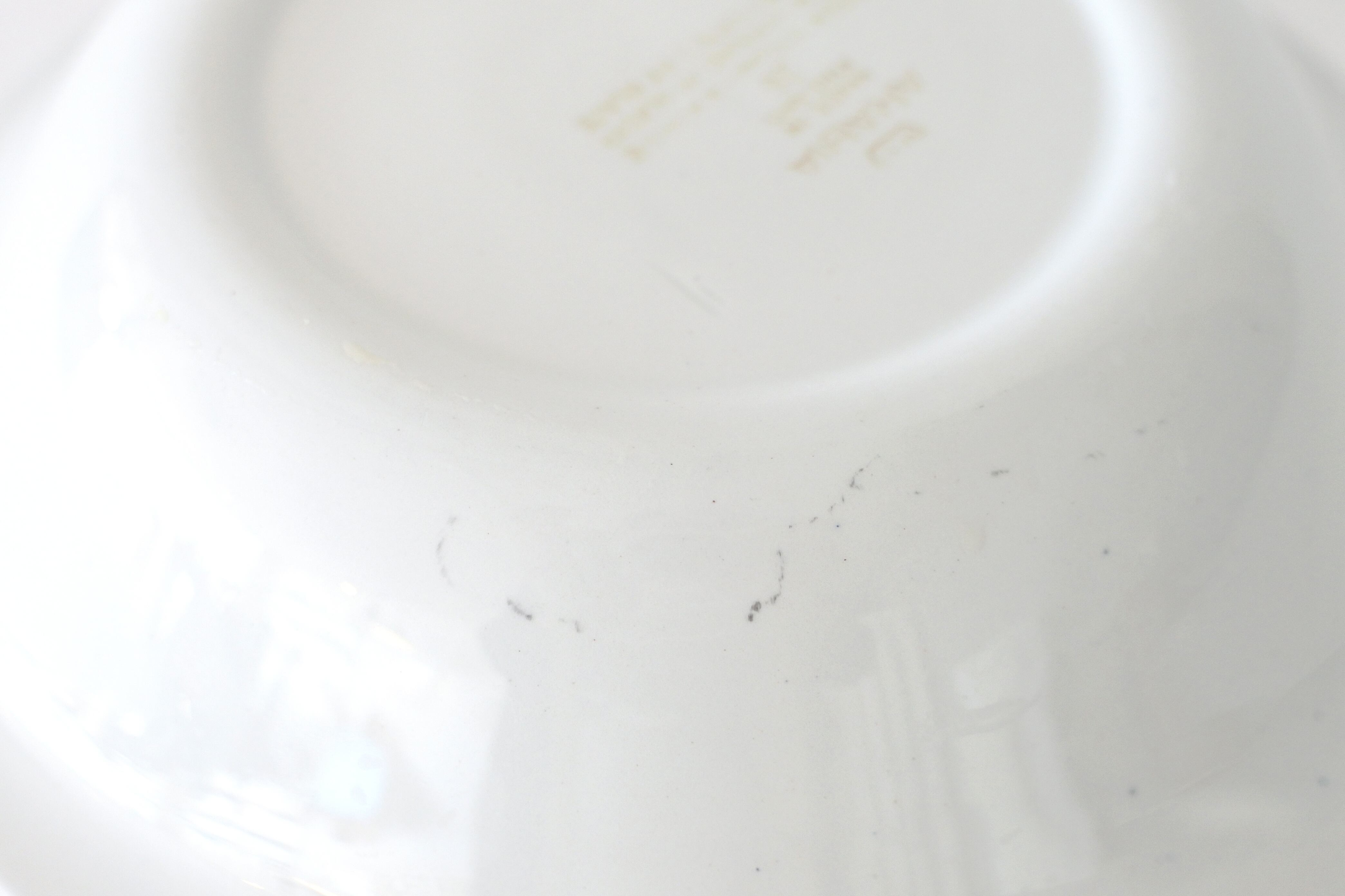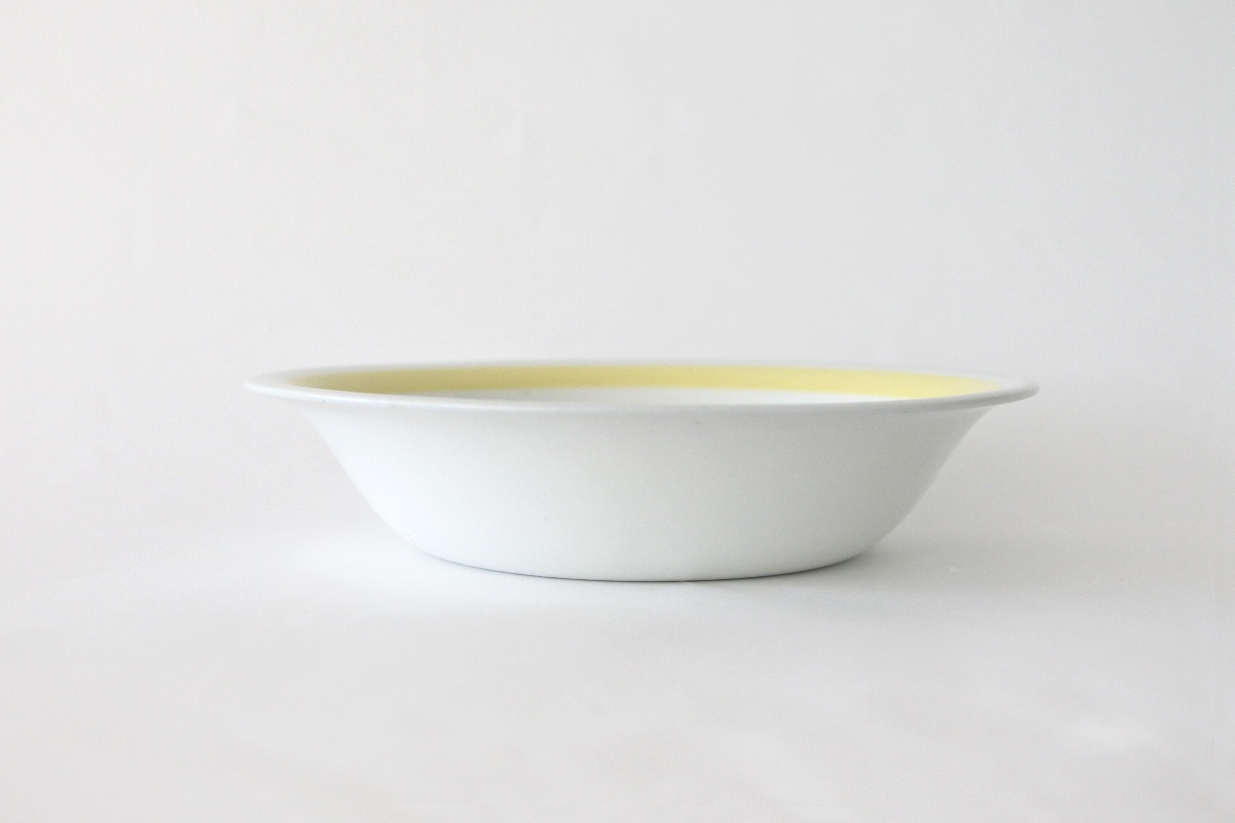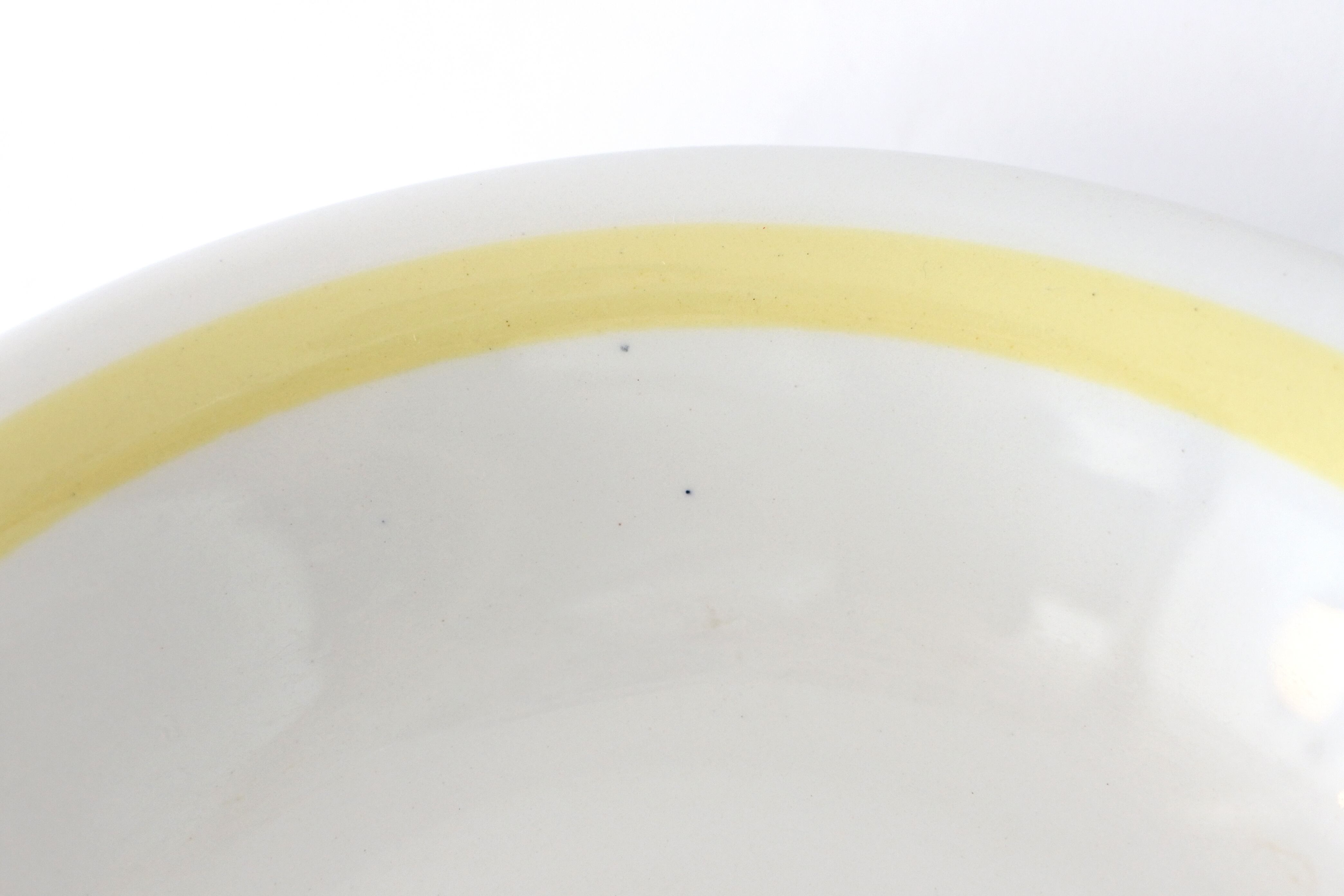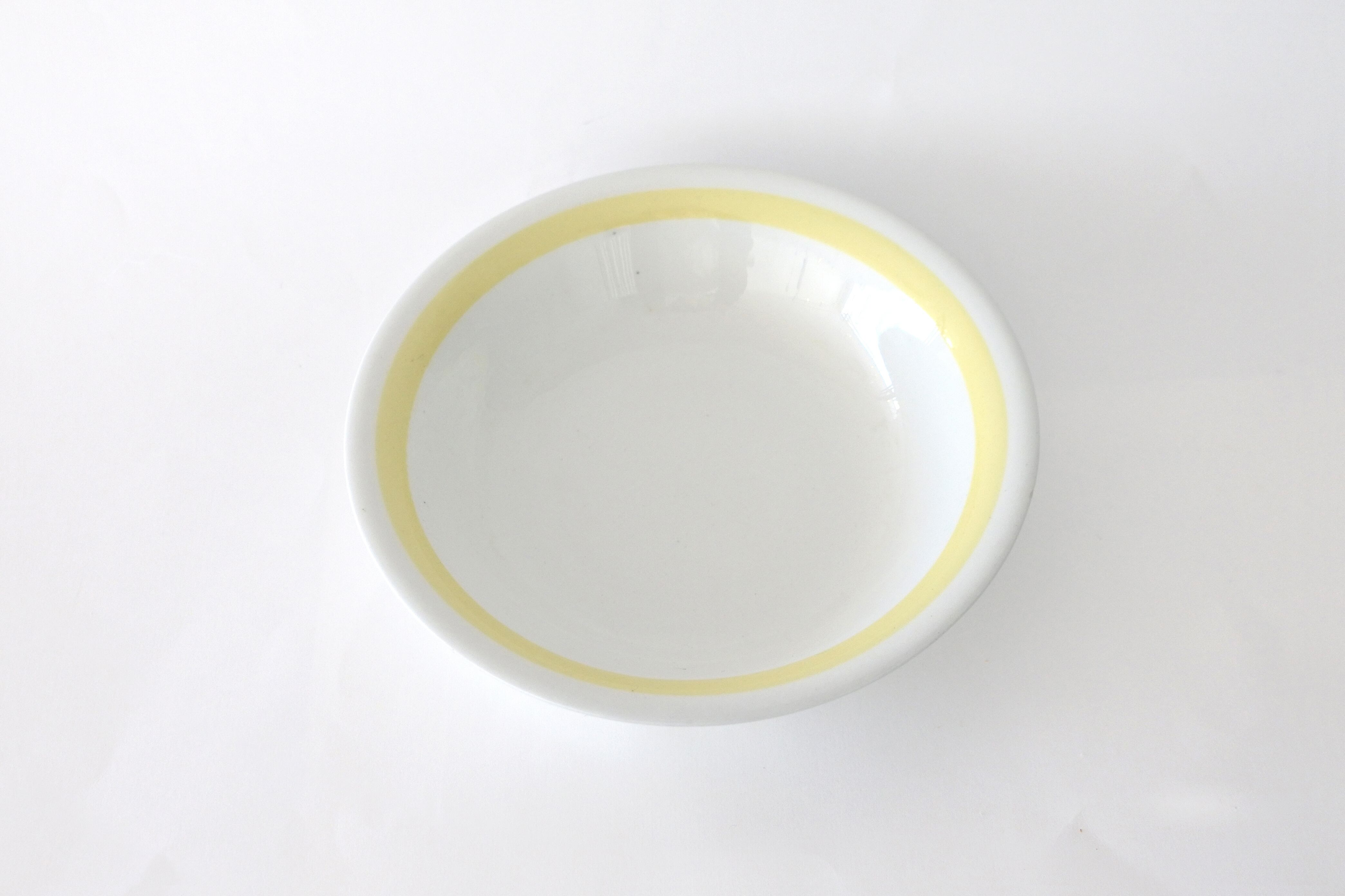 リムに余白を残したリボンのような色付けは、他にブルー、レッド(ピンク)、グリーンなどがありますが、今回はふわりとした卵色のようなイエローの縁取りのものが見つかりました。