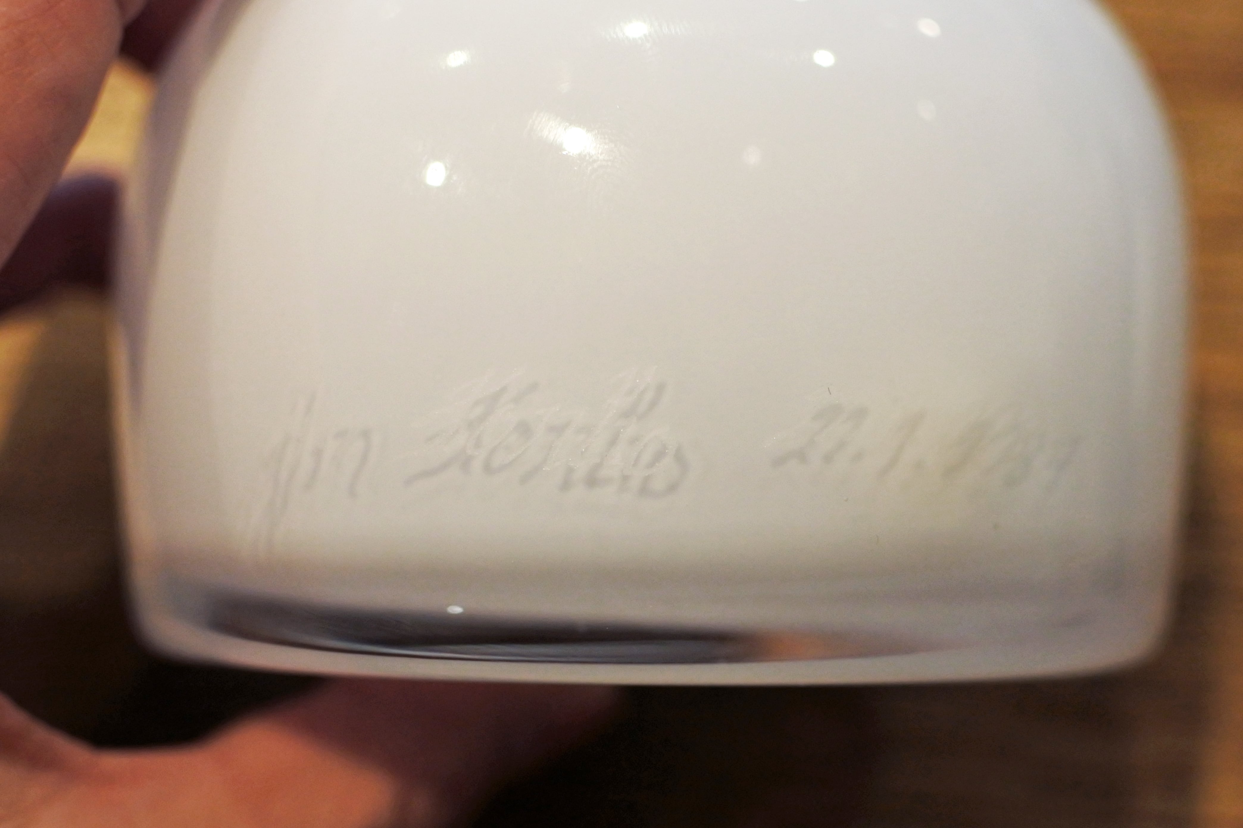 カイ・フランクに師事し、のちにカイ・フランクにスカウトされNuutajärviガラス工房に所属した女性デザイナー、Kerttu Nurminen (ケルトゥ・ヌルミネン) が1985年にデザインしたオイルランプ。