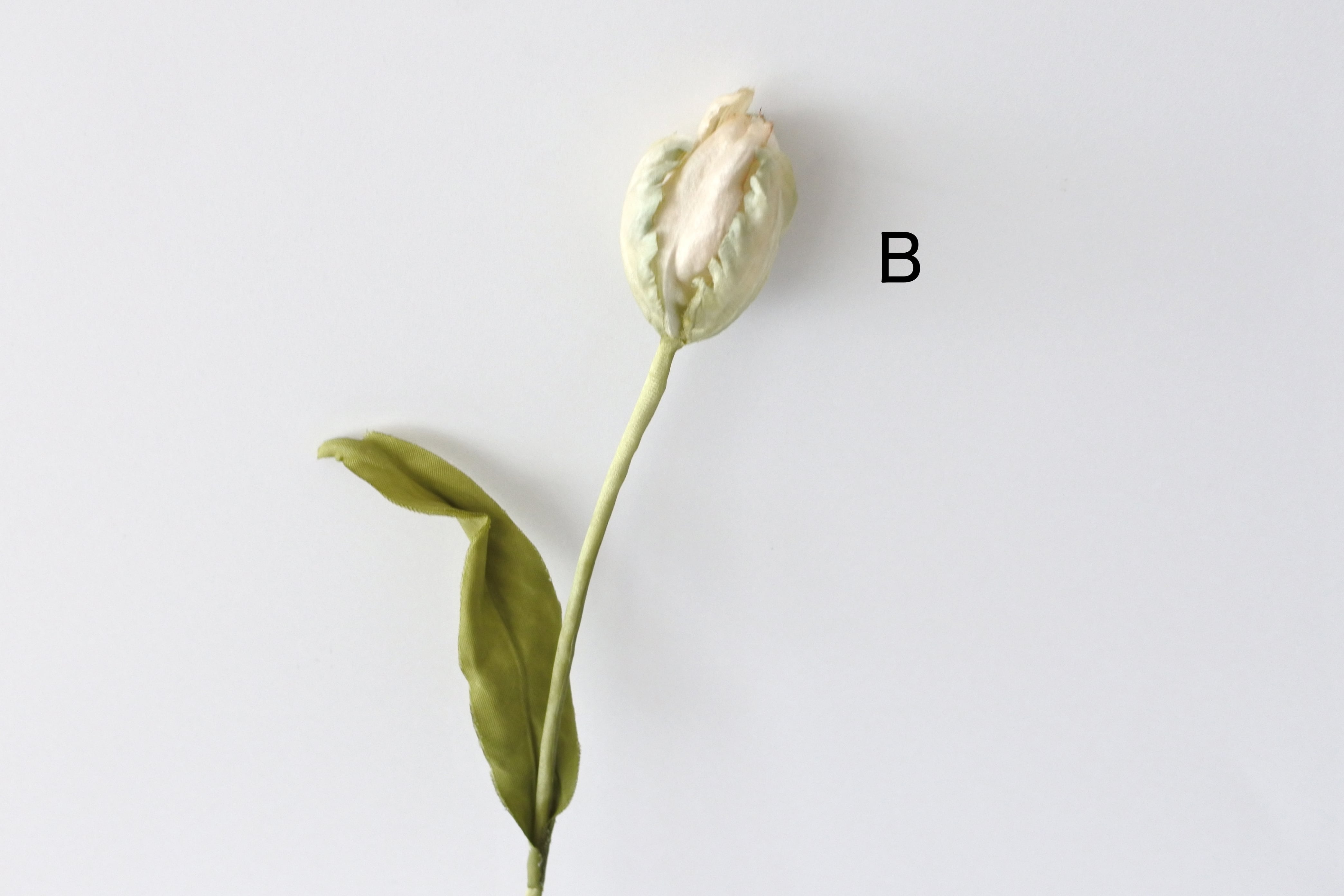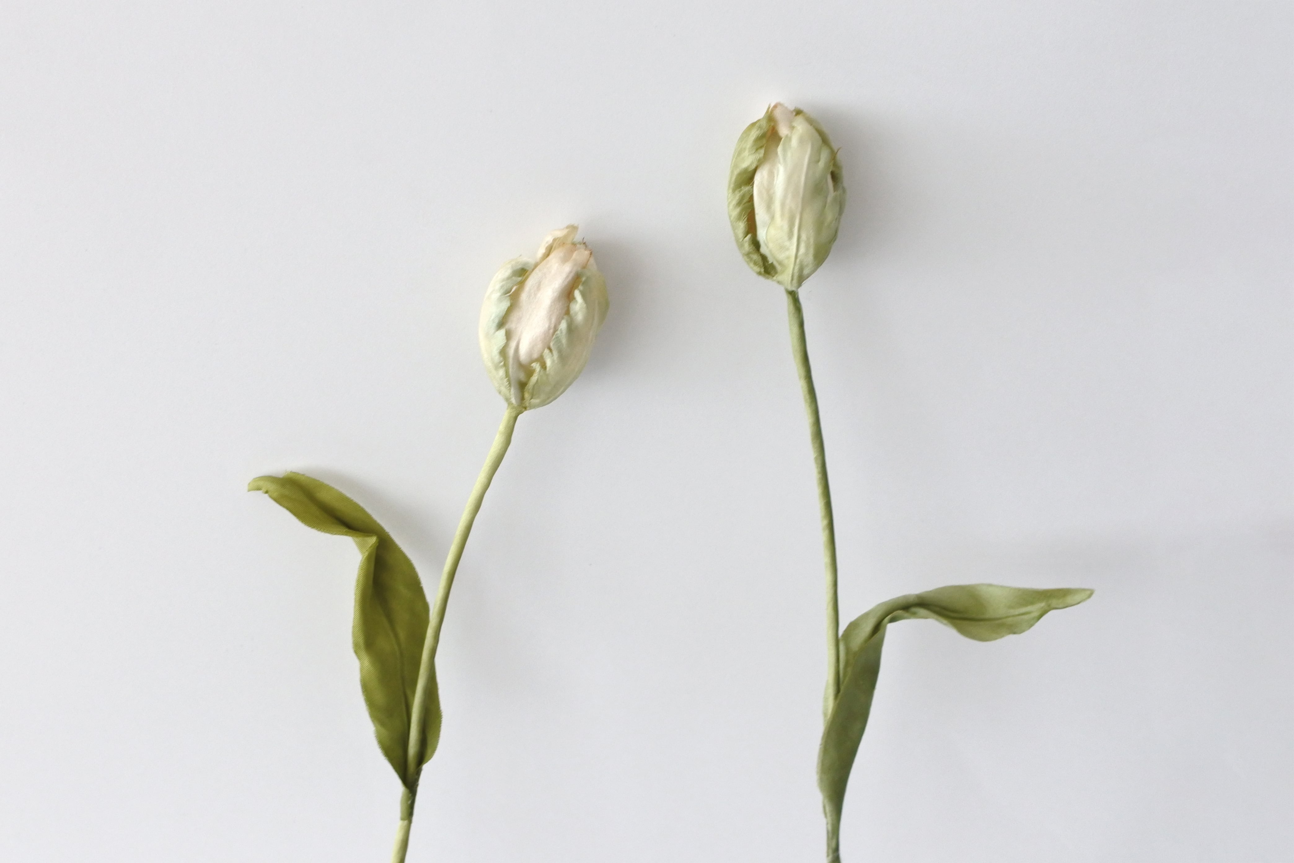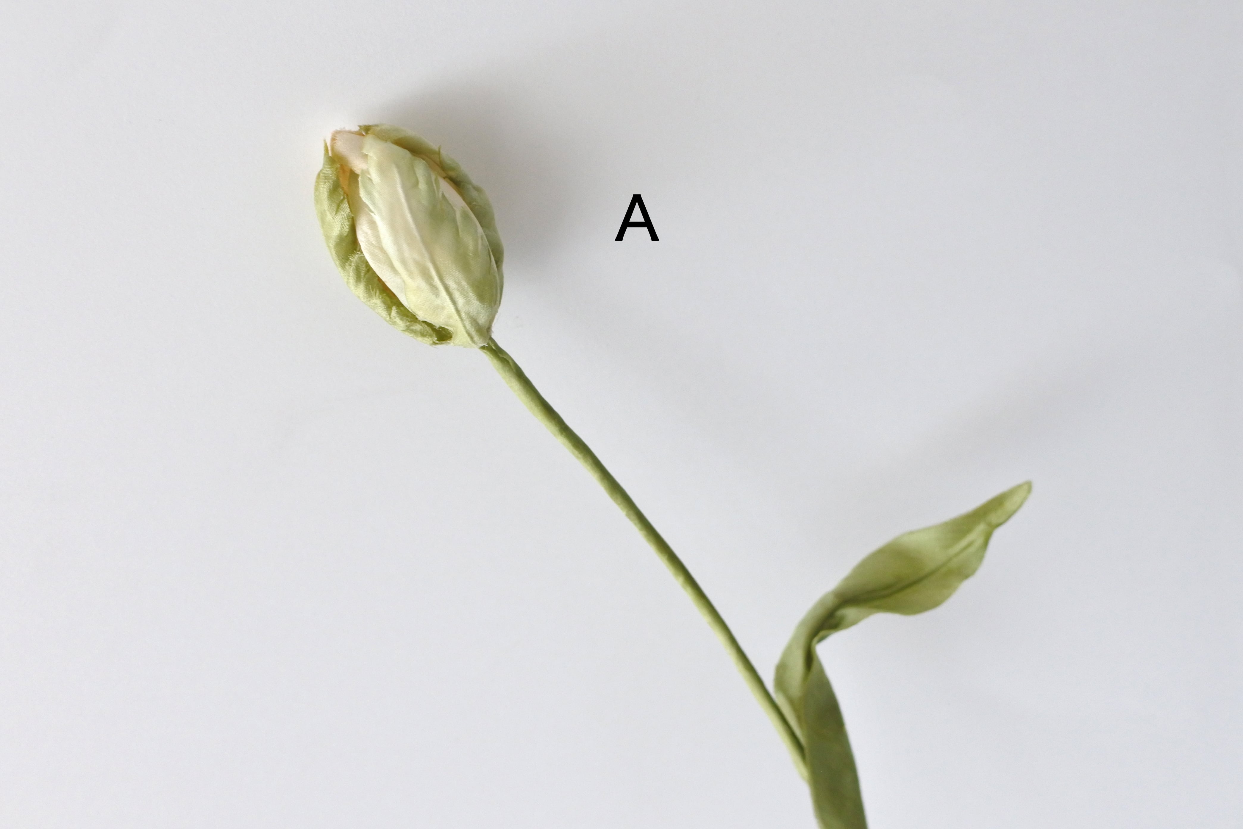グリーン花びらの奥にほんのり薄桃色の花びらを隠し持った染め花のチューリップ。