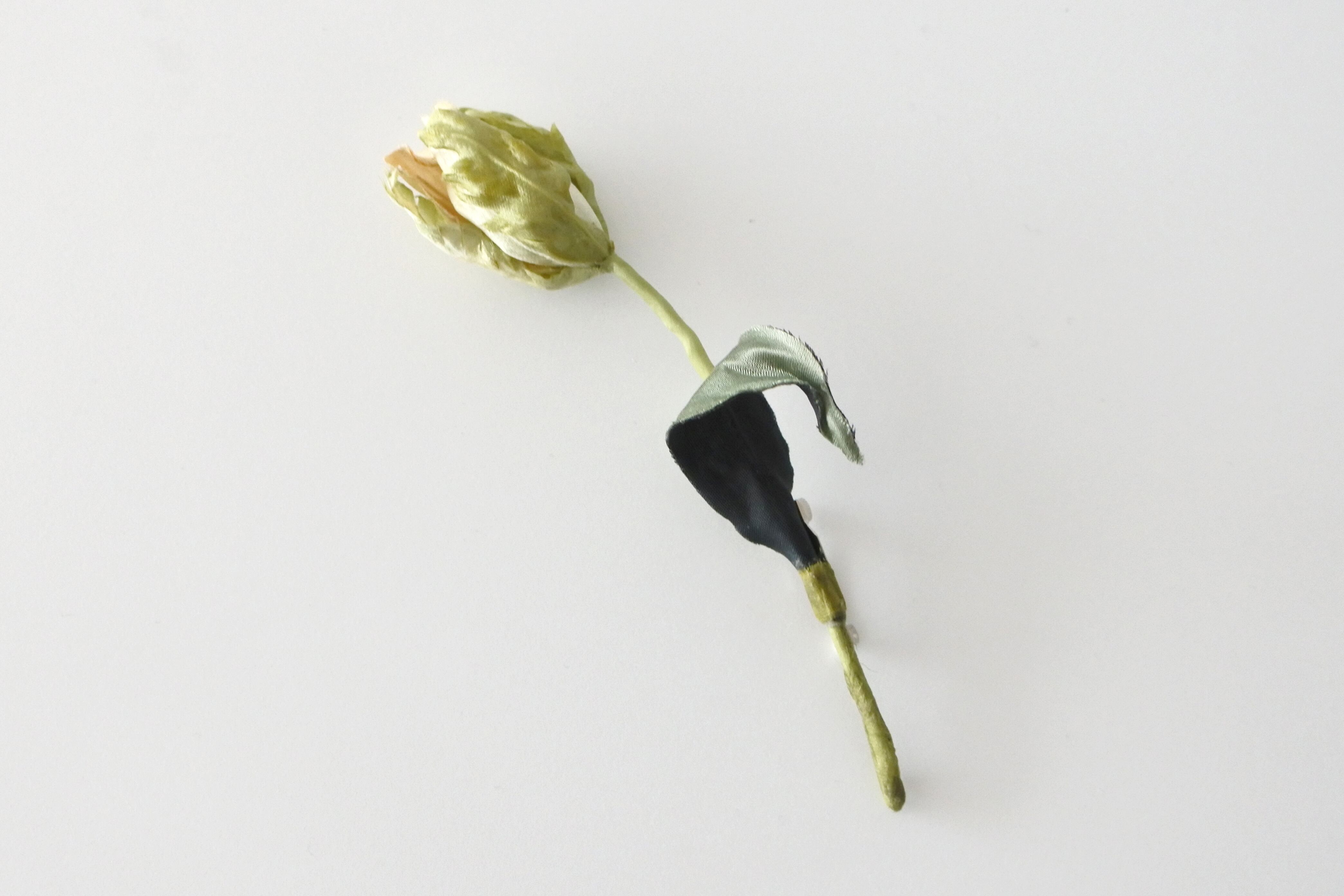 ブローチピンが付いているので、春を感じさせるチューリップの花をジャケットや帽子、バッグにさりげなく添えて。