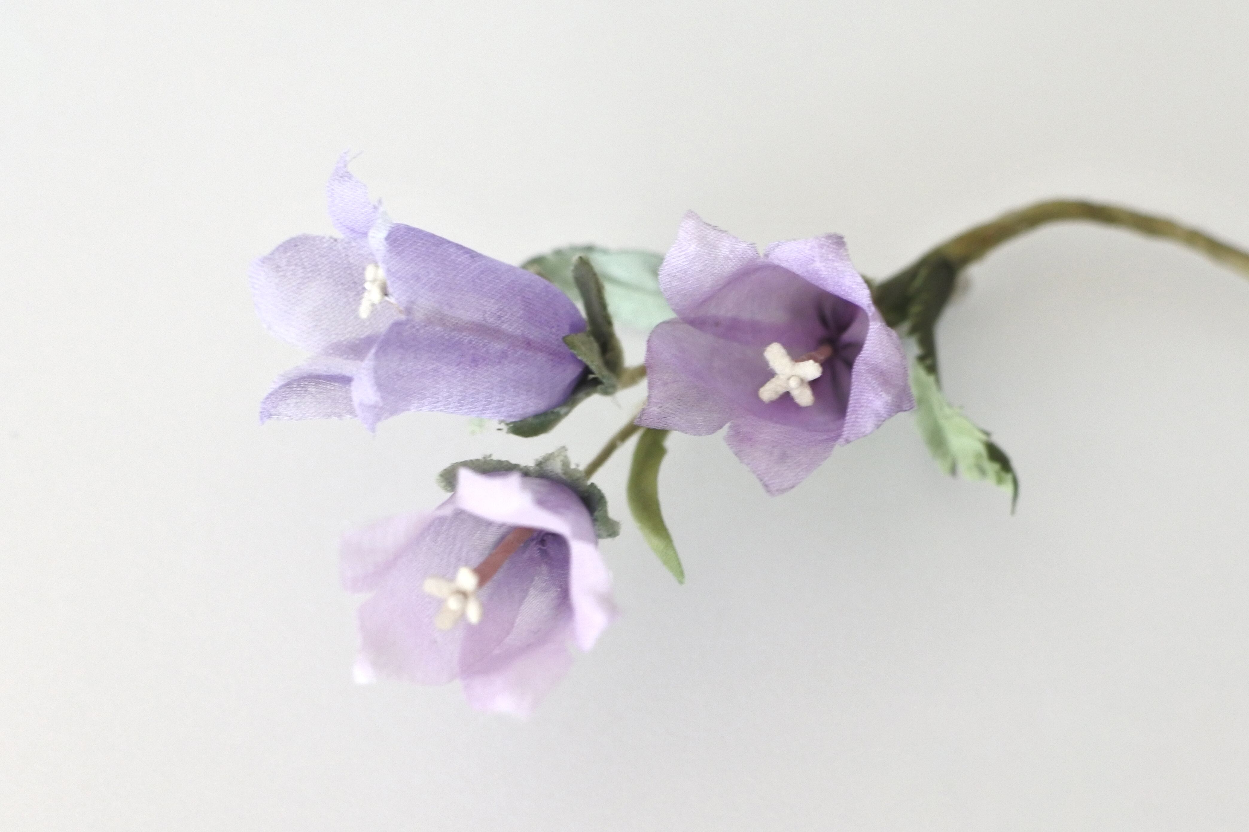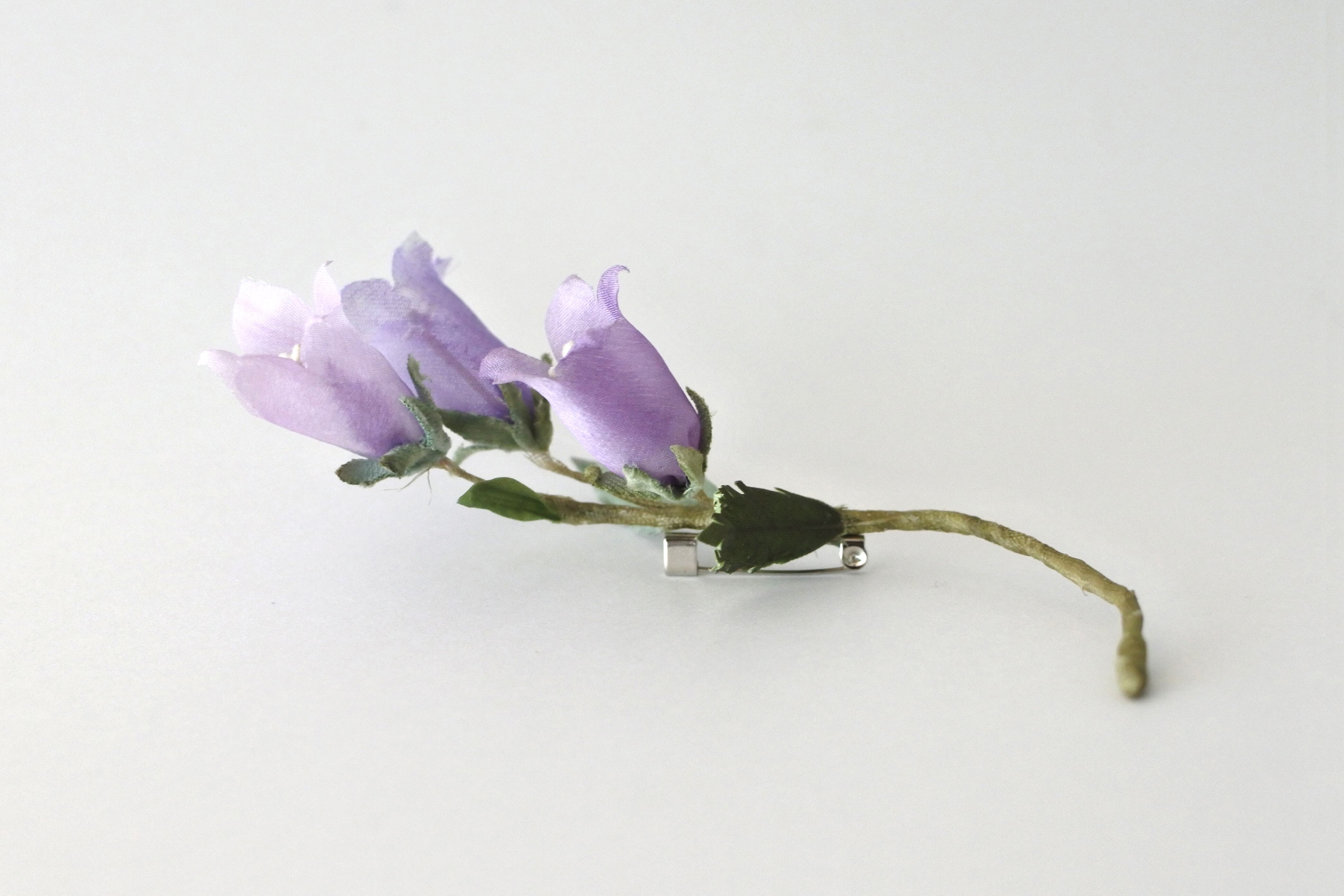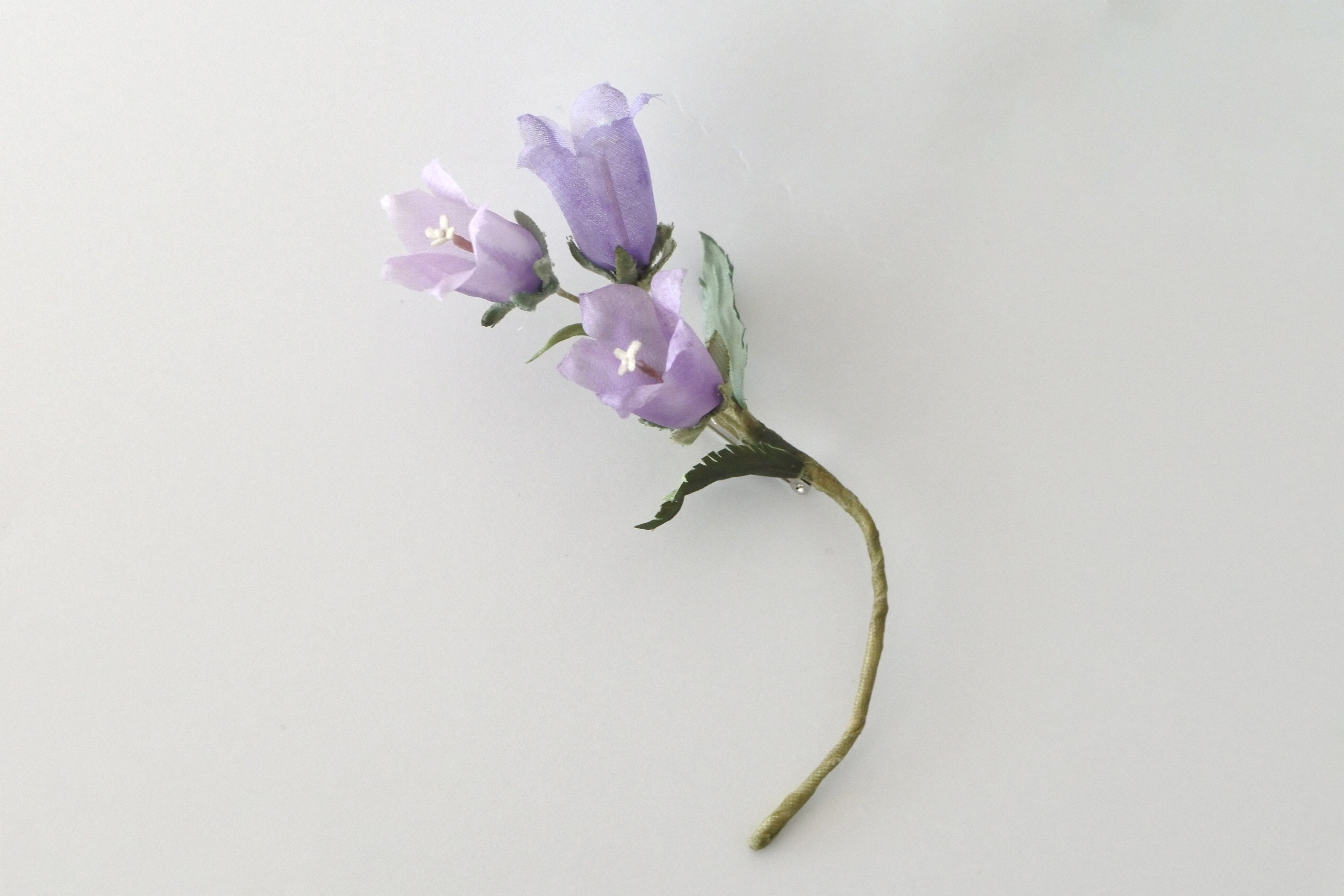 フウリンソウ、ツリガネソウの別名の通り、ベル型の可愛らしい花をしたカンパニュラをコサージュにしました。