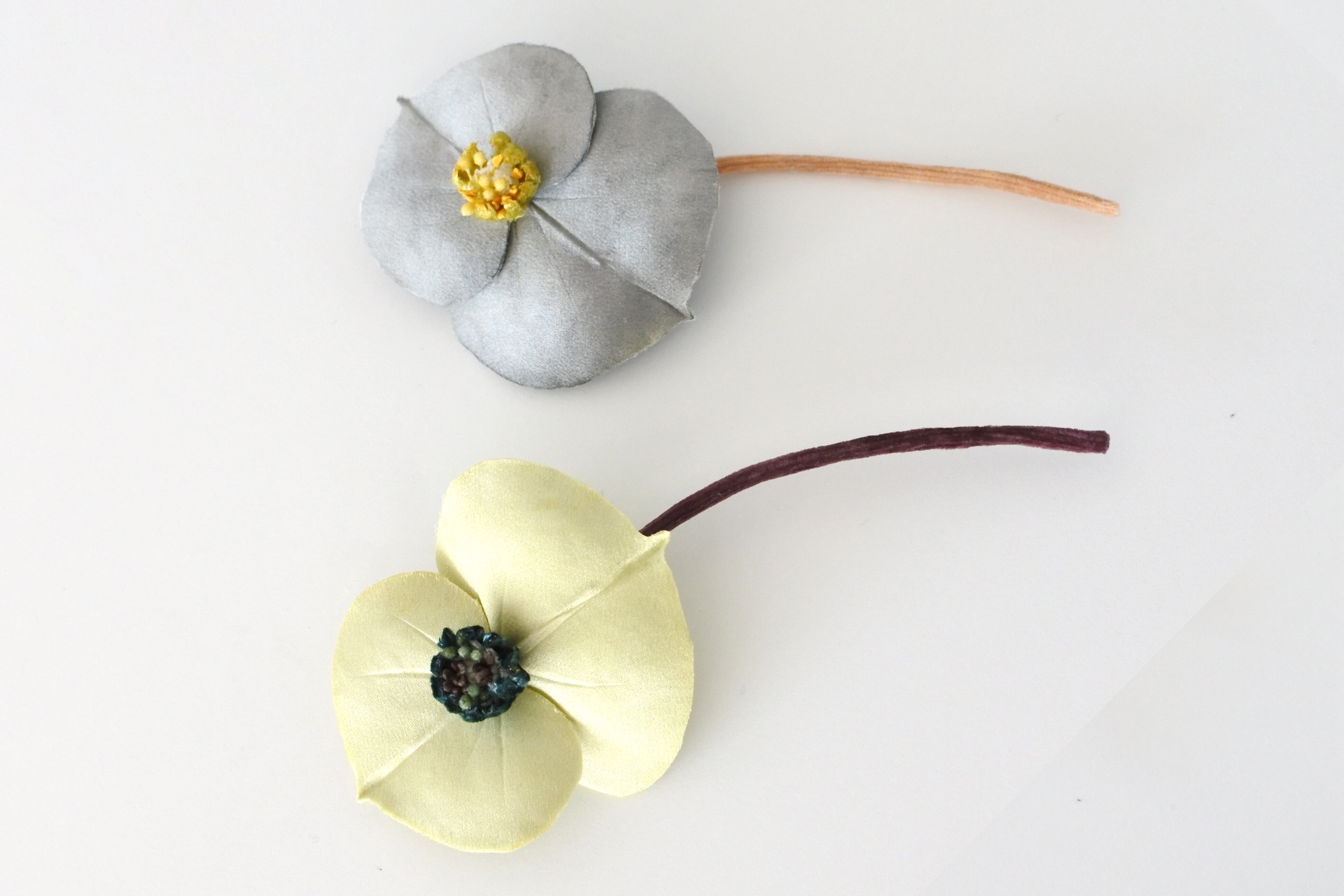 デリケートな布のお花ですので花びらを優しくお触りください。