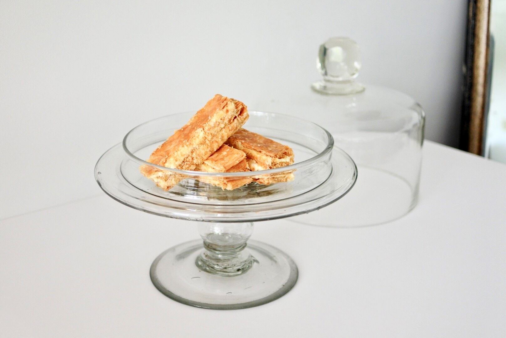 antique glass cake stand with dome dead stock / 古いガラス ケーキスタンド デッドストック