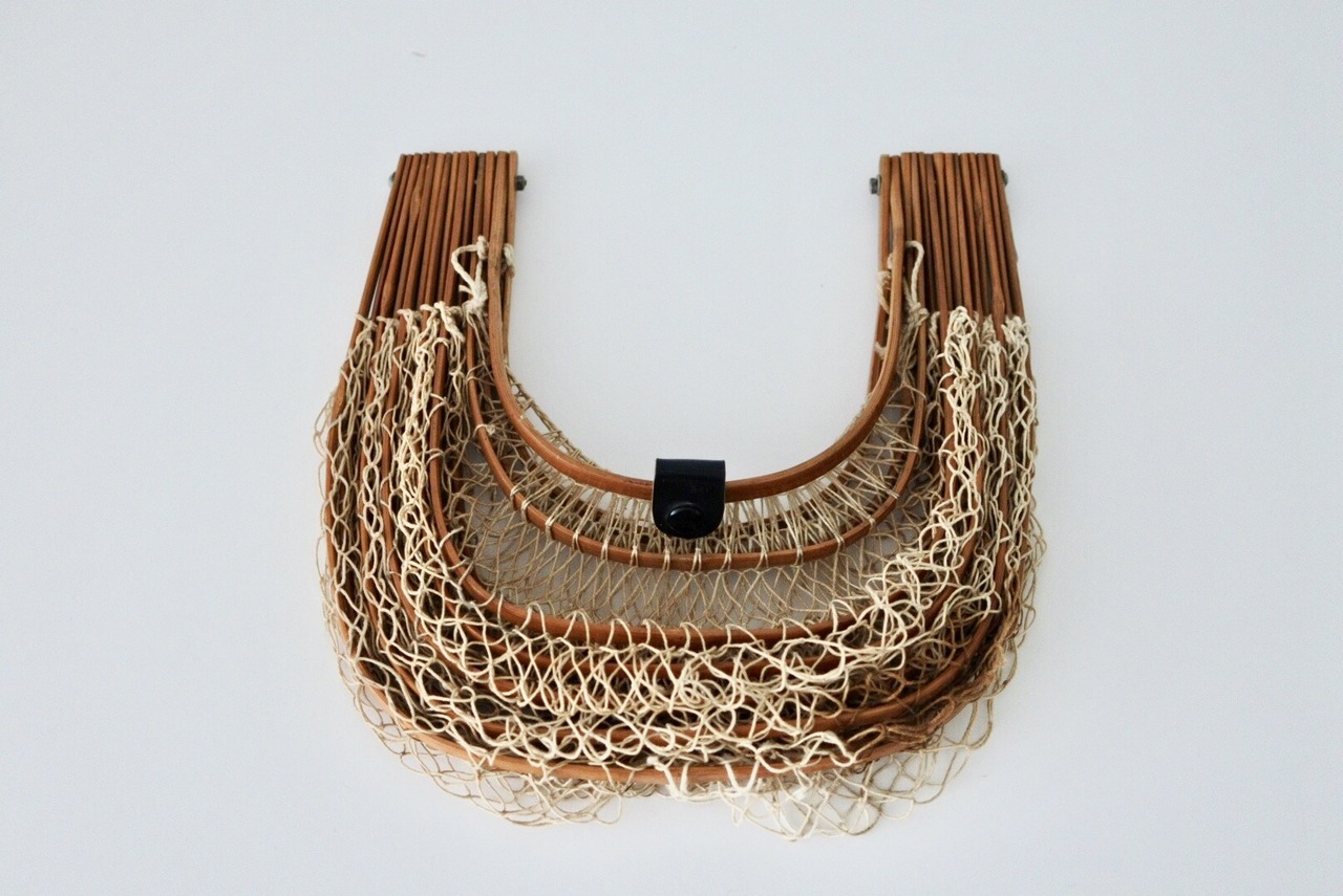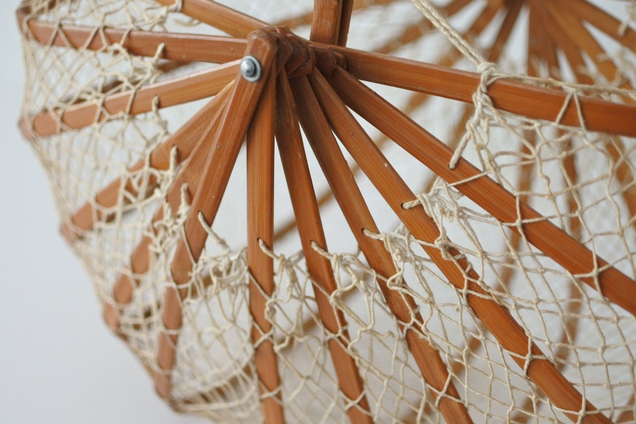 竹と網の折り畳みバスケット。
