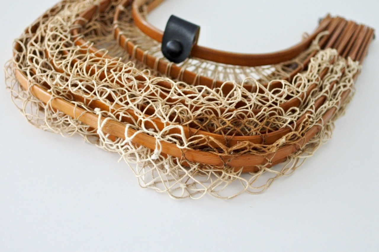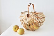 畳んで持ち運べる、エコバッグの原型のようなかご。
