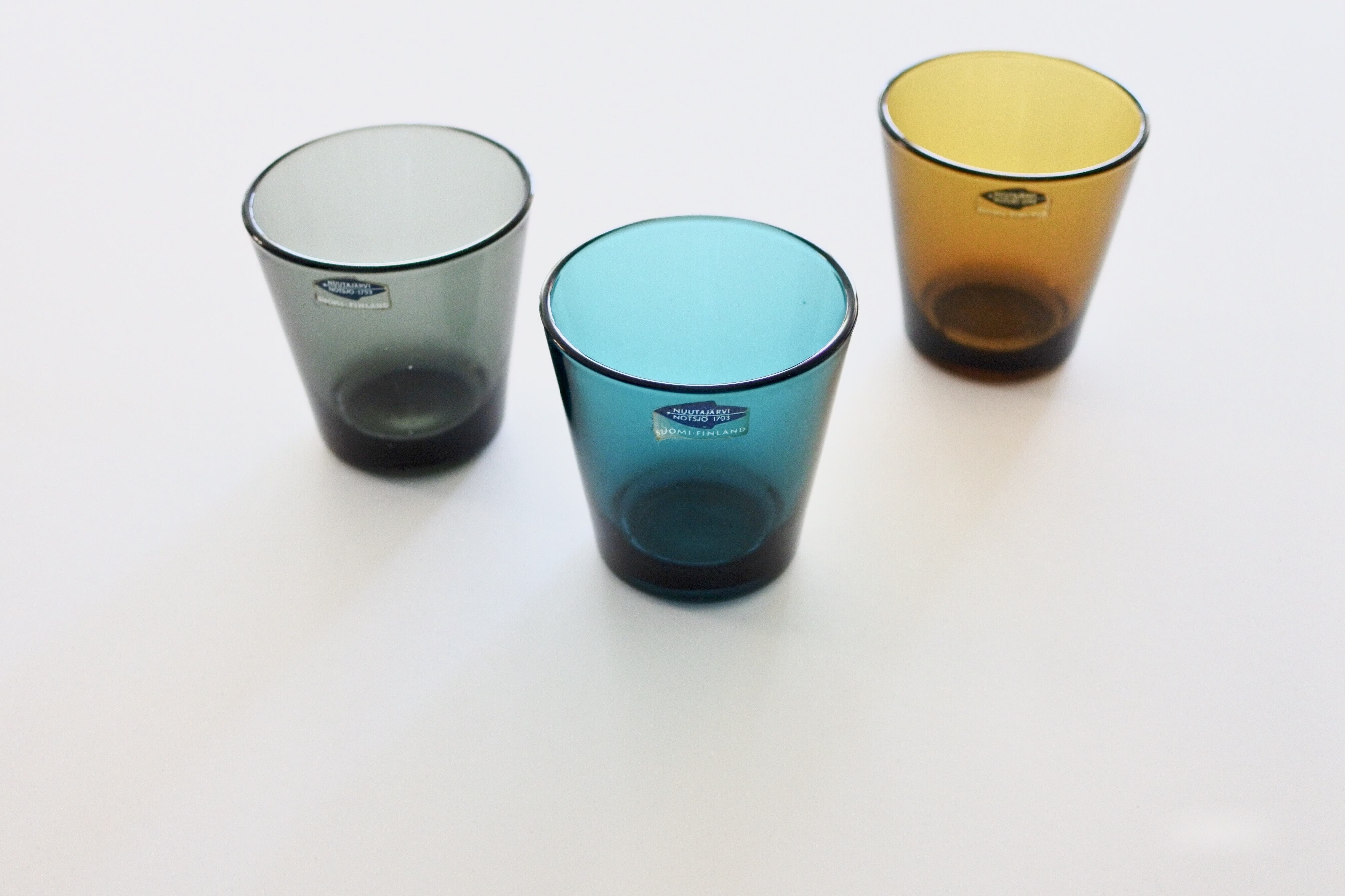 Kaj Franck(カイ・フランク)の代表作であり、現在でもイッタラより販売されているロングセラーデザイン カルティオシリーズの原型モデル。ターコイズ、スモーク、アンバーの各2個づつの6個セットです。