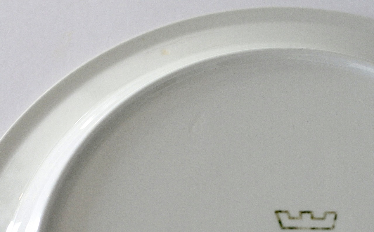 ツヤもあり、ヒビ・欠けのない良好なヴィンテージコンディションですが、カトラリー跡や全体に細かな擦り傷があります。
