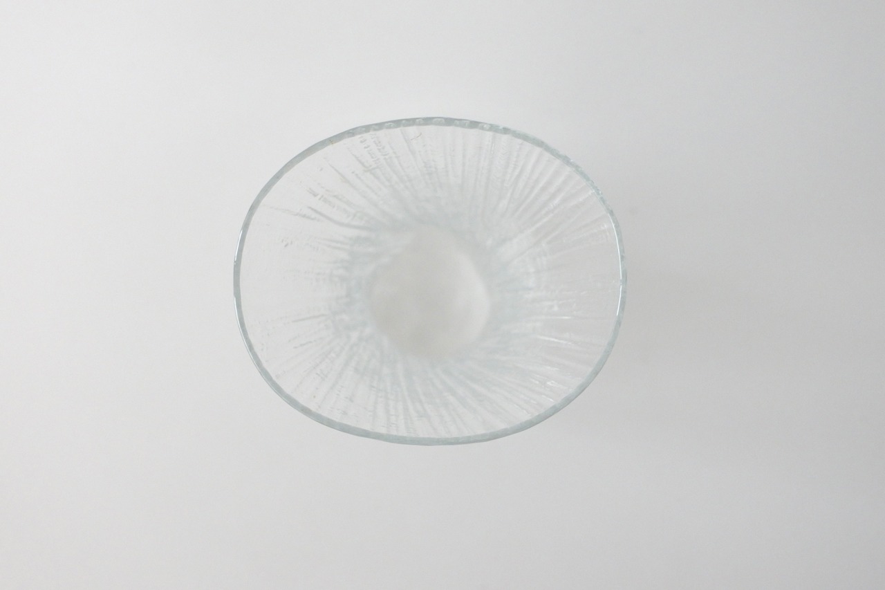波打つ楕円の上下を捻ったような形状が、活けたお花の向きを止めやすく美しく見せてくれます。
