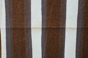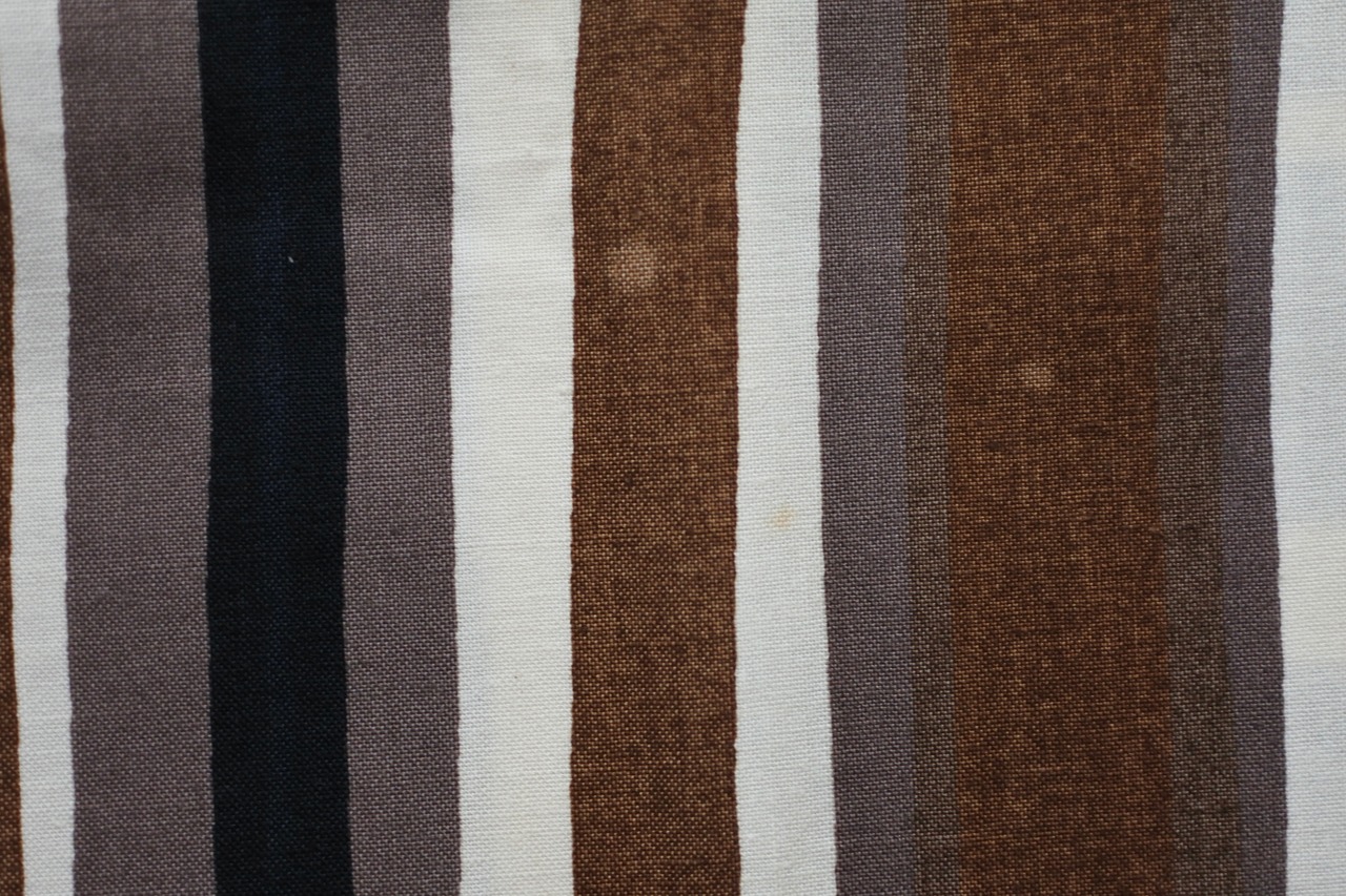 はっきりしたパターンの為かあまり気になりませんが。長年の保管による褪色、黄ばみ、色むらがございます。(あくまで個人的な感想です。)