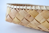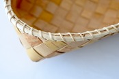 白樺の樹皮をテープ状にカットし編み込んだ後、根かがりという技法で縁に強度を持たせています。