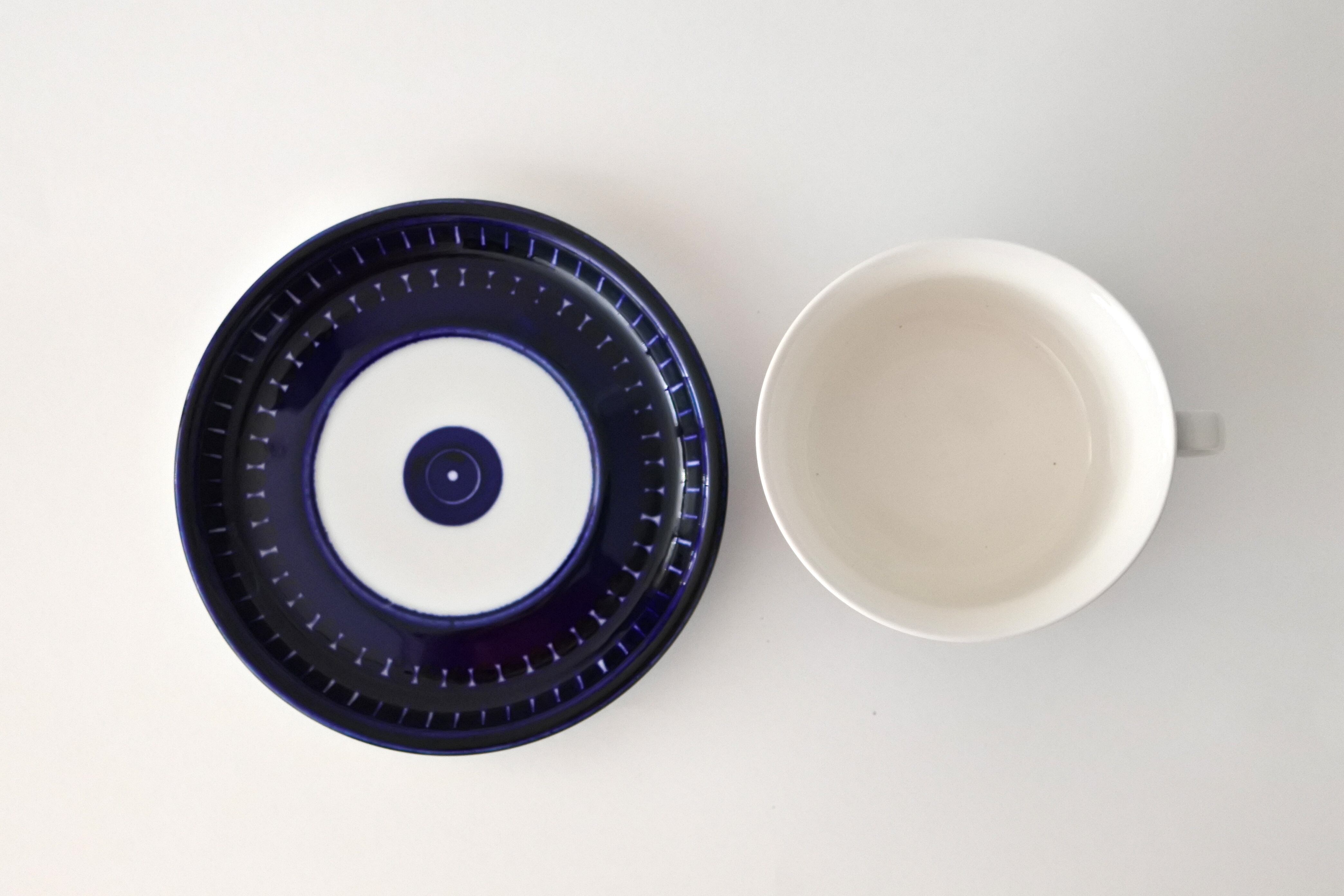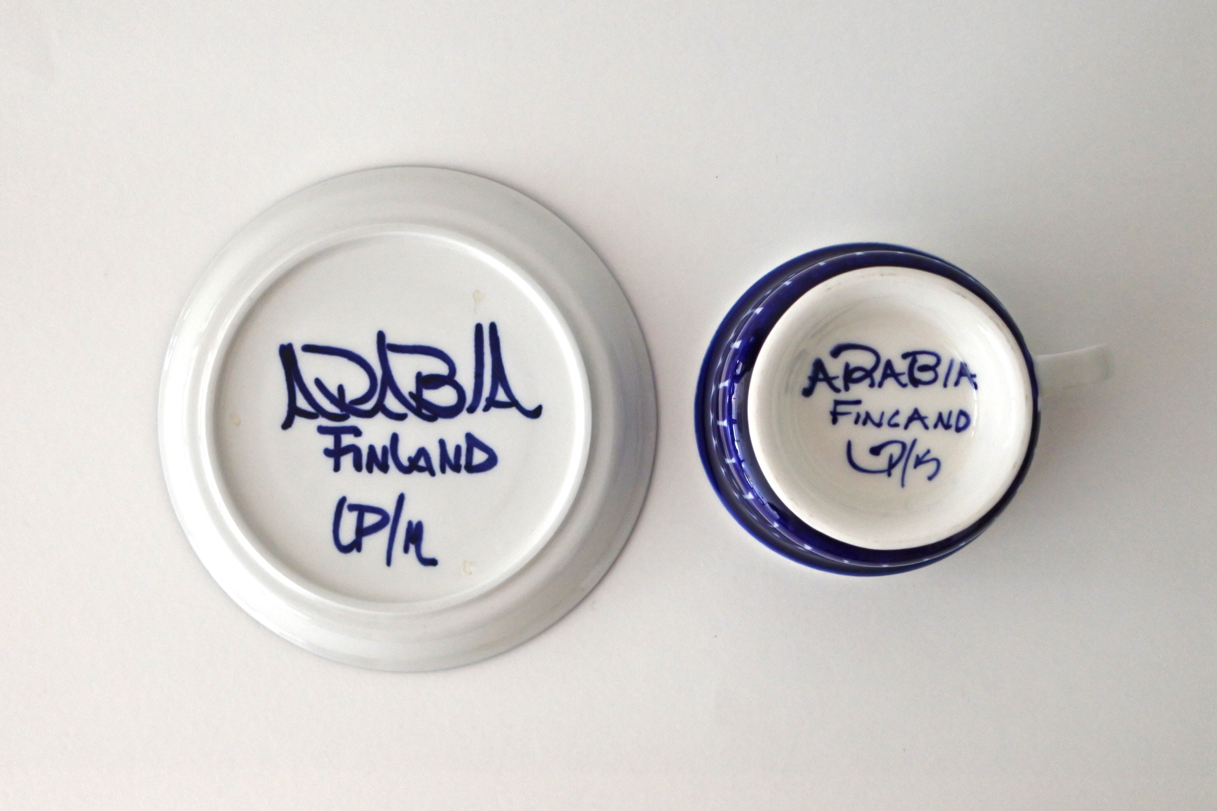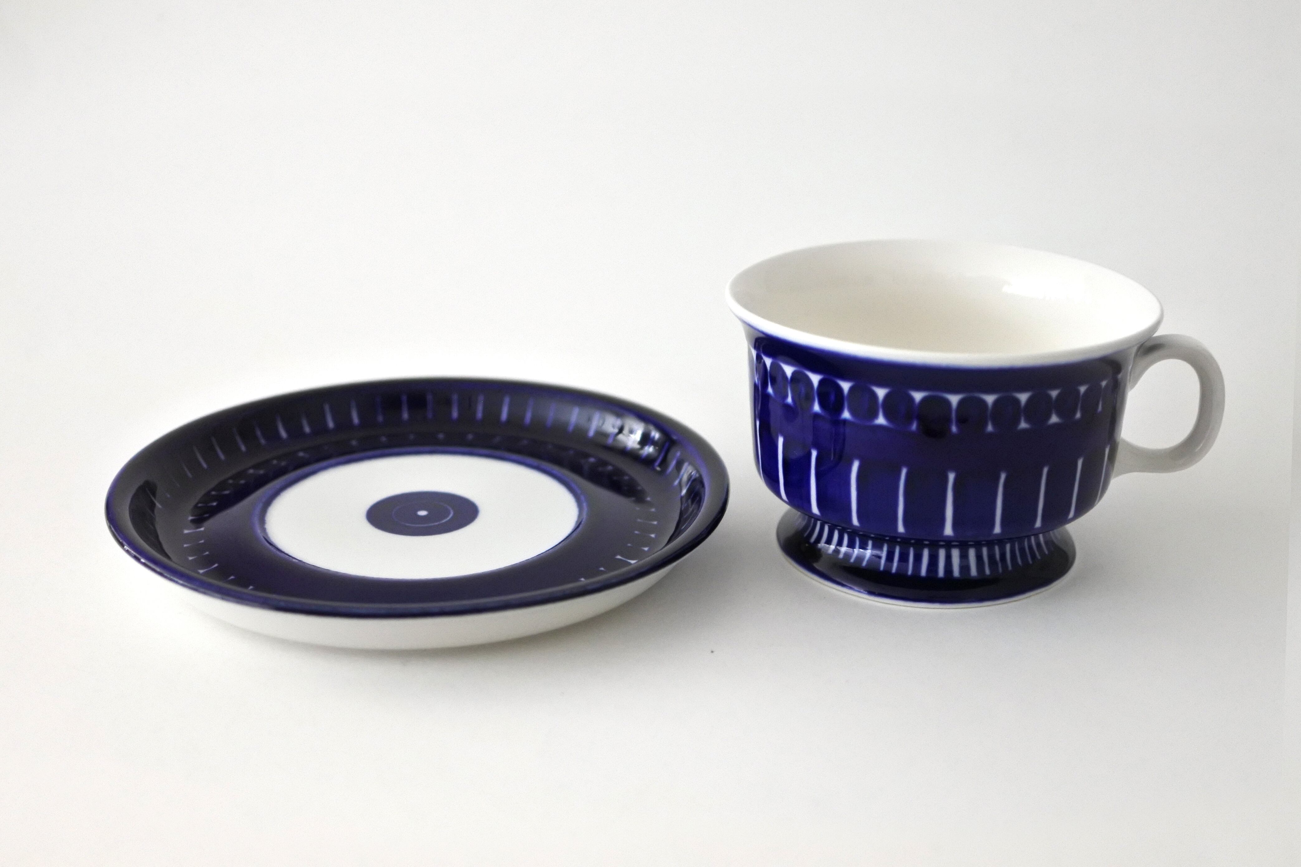 眩しいほど鮮やかなコバルトブルーの手描き模様により大変人気の高いバレンシアシリーズは絵付け師としてARABIA社に入社し、のちにデザイナーとなったUlla Procope(ウラ・プロコッペ)によるものです。
