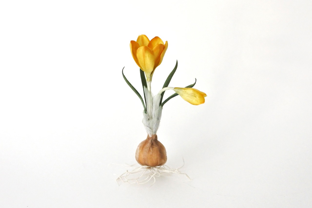 春の訪れを告げるクロッカスの花を小さな球根付きで。