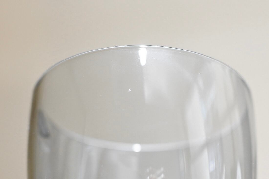緩やかな曲線を描くフォルムはスタッキングが可能で、彼女の得意とした機能性を重視したシンプルで美しいグラスです。