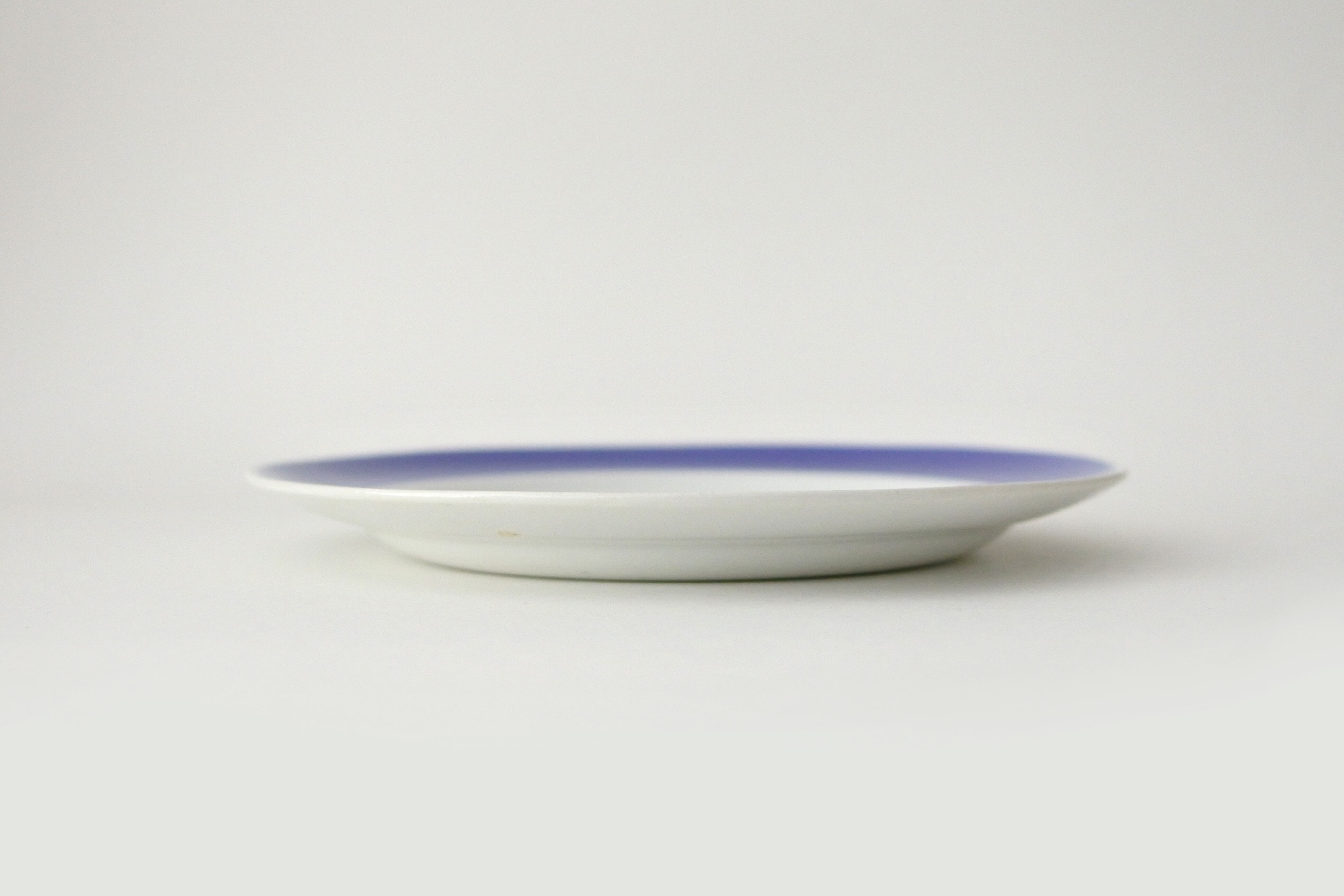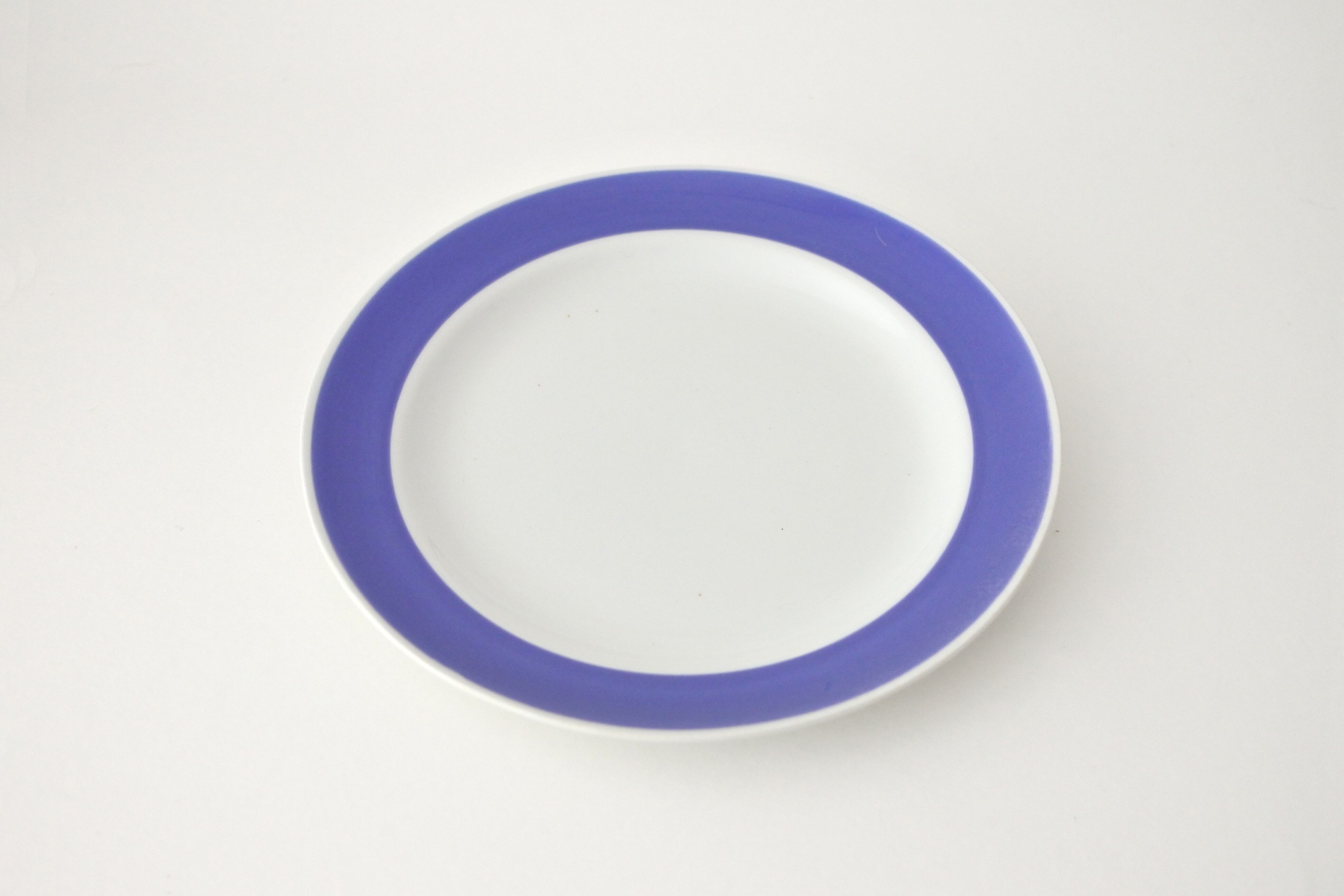 ブルーのラインで縁取られたプレートはトーストやデザート、サラダに使いやすいサイズ。