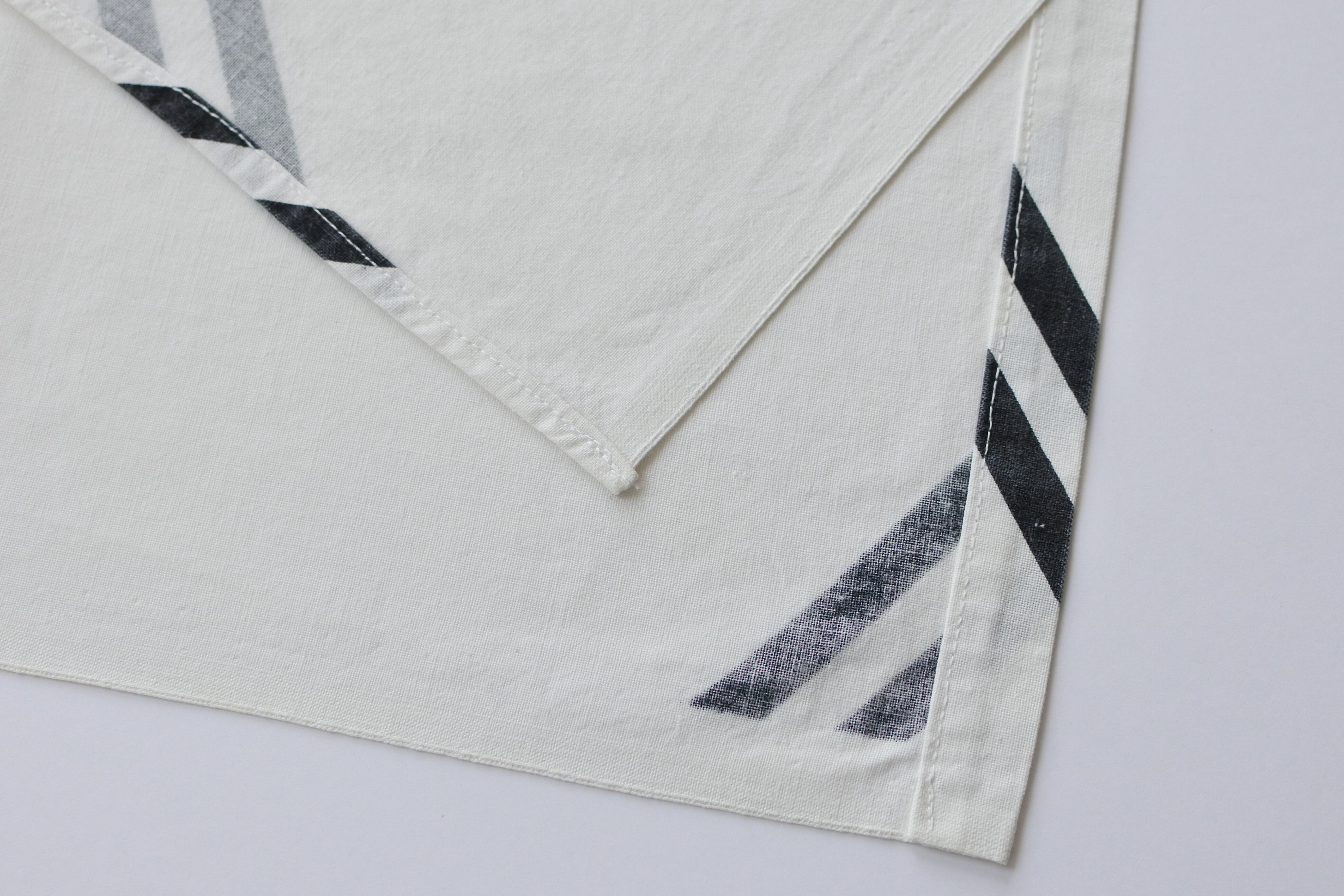 生地の上部は5mmほどの三つ折り、下部は2cmほどの三つ折りに縫われています。