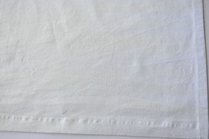 生地の上部は1cmほどの三つ折り、下部は5cmほどの三つ折りに縫われています。