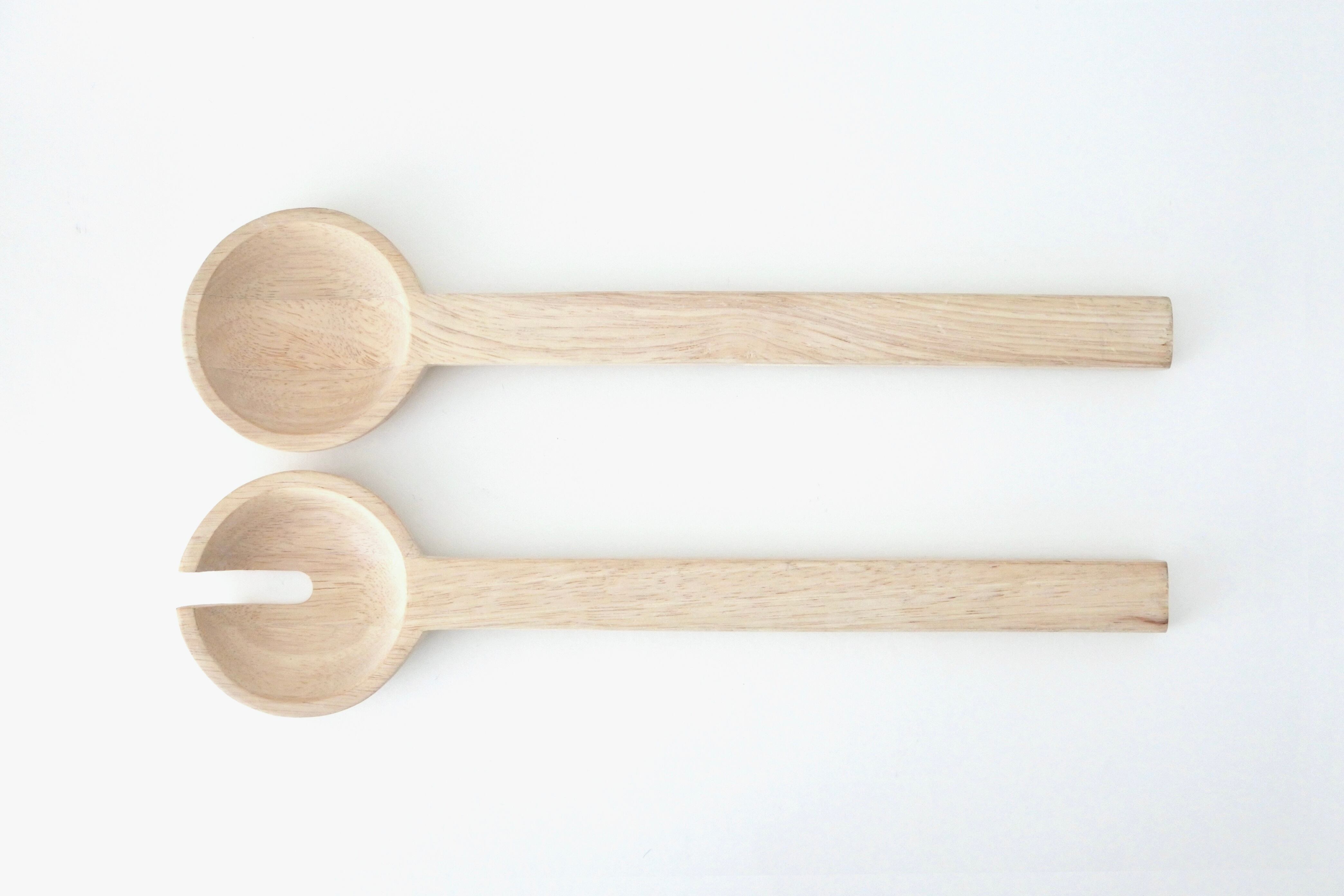 様々なサイズのトレーやボウルが作られたWOOD LINEシリーズの大きなサラダサーバーはすっきりとした色合いのバーチ材で作られています。