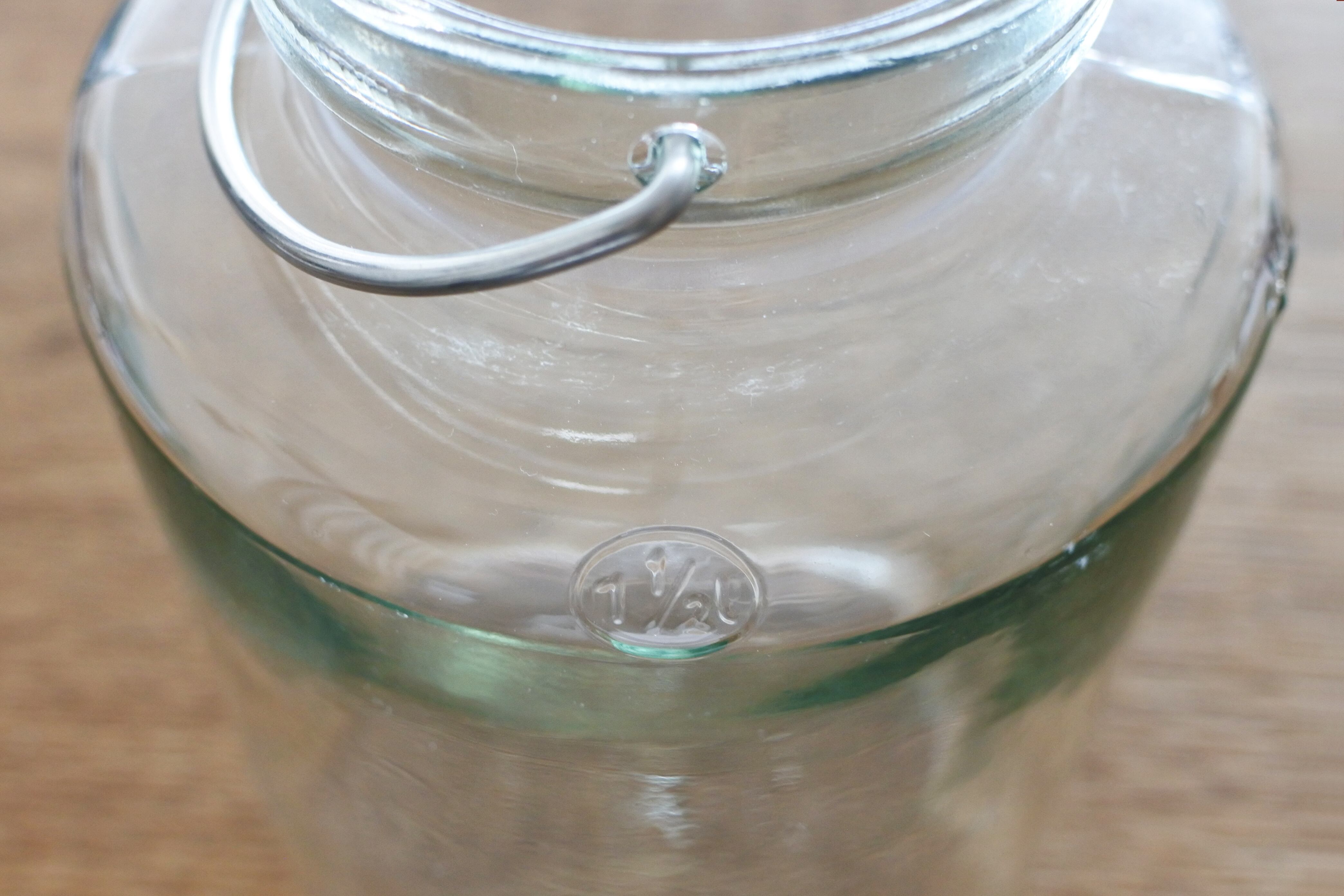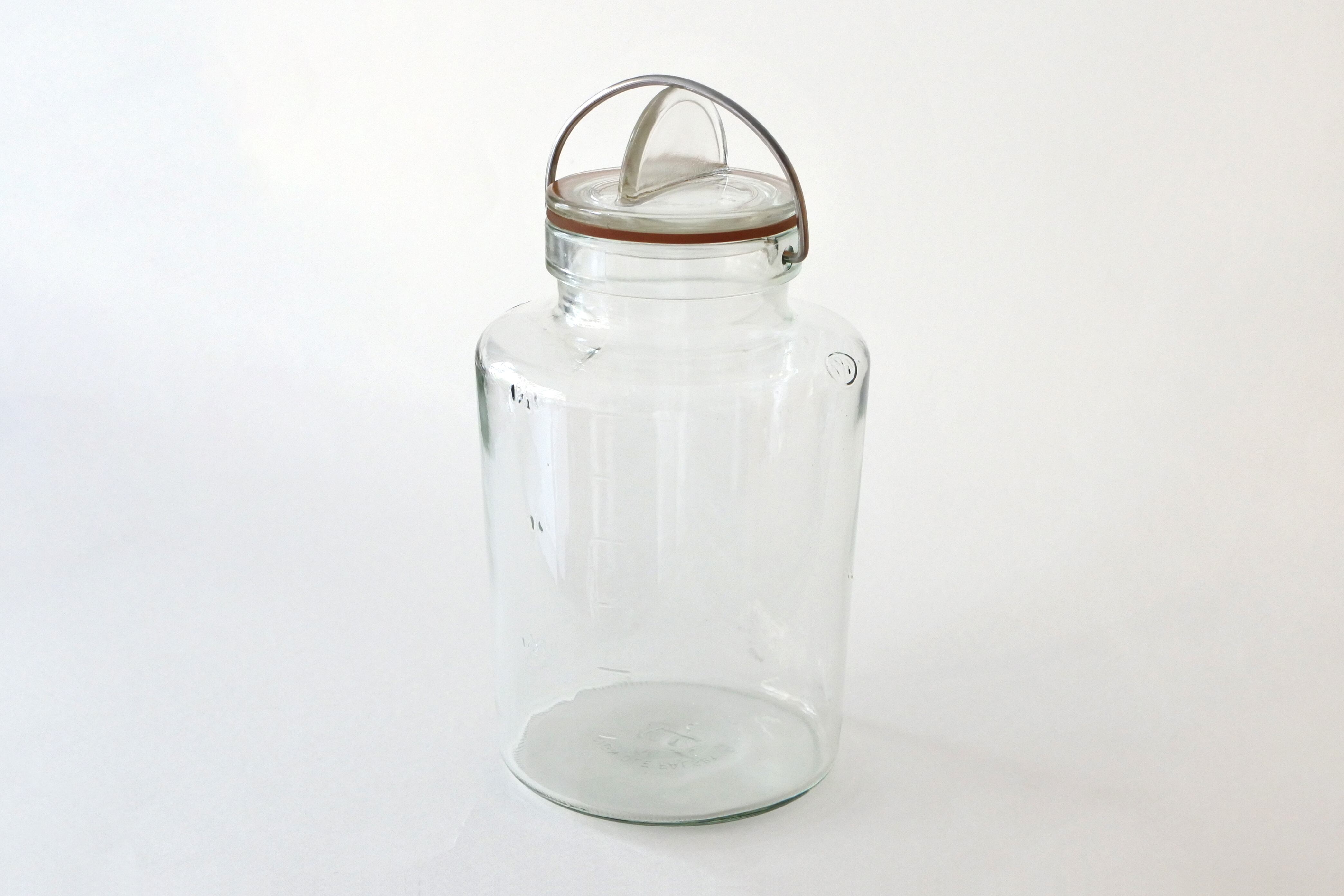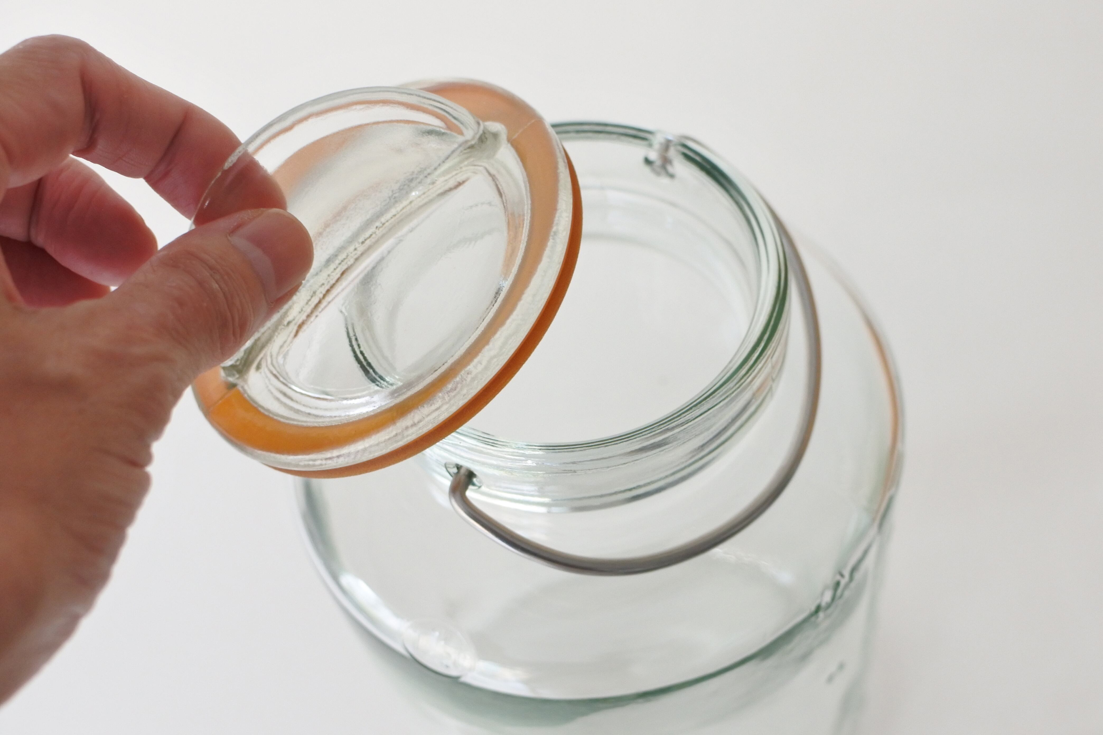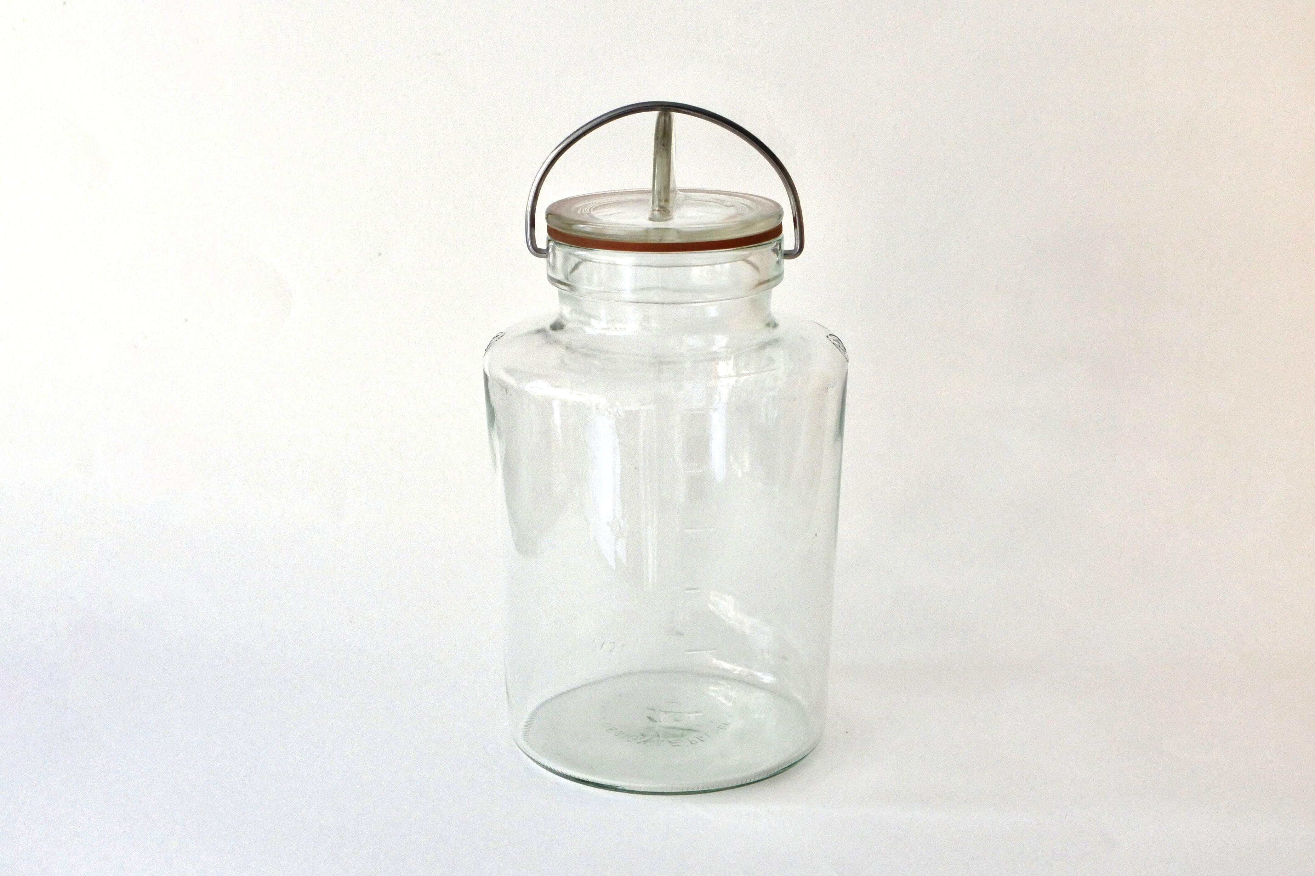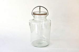 ステンレスの留め金でガラス蓋を押さえるタイプの密閉できる保存瓶です。